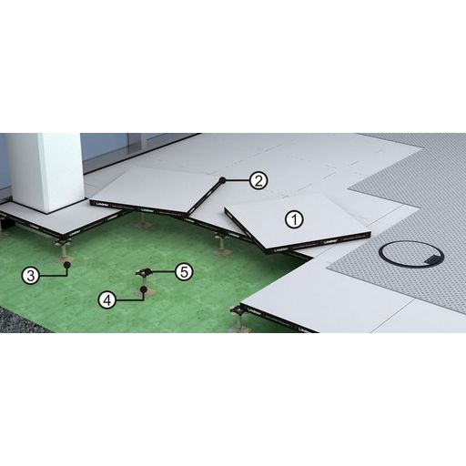 den nötigen Hohlraum für Installationen schafft, besteht aus höhenverstellbaren, verzinkten Stahlstützen aus eigener Produktion und