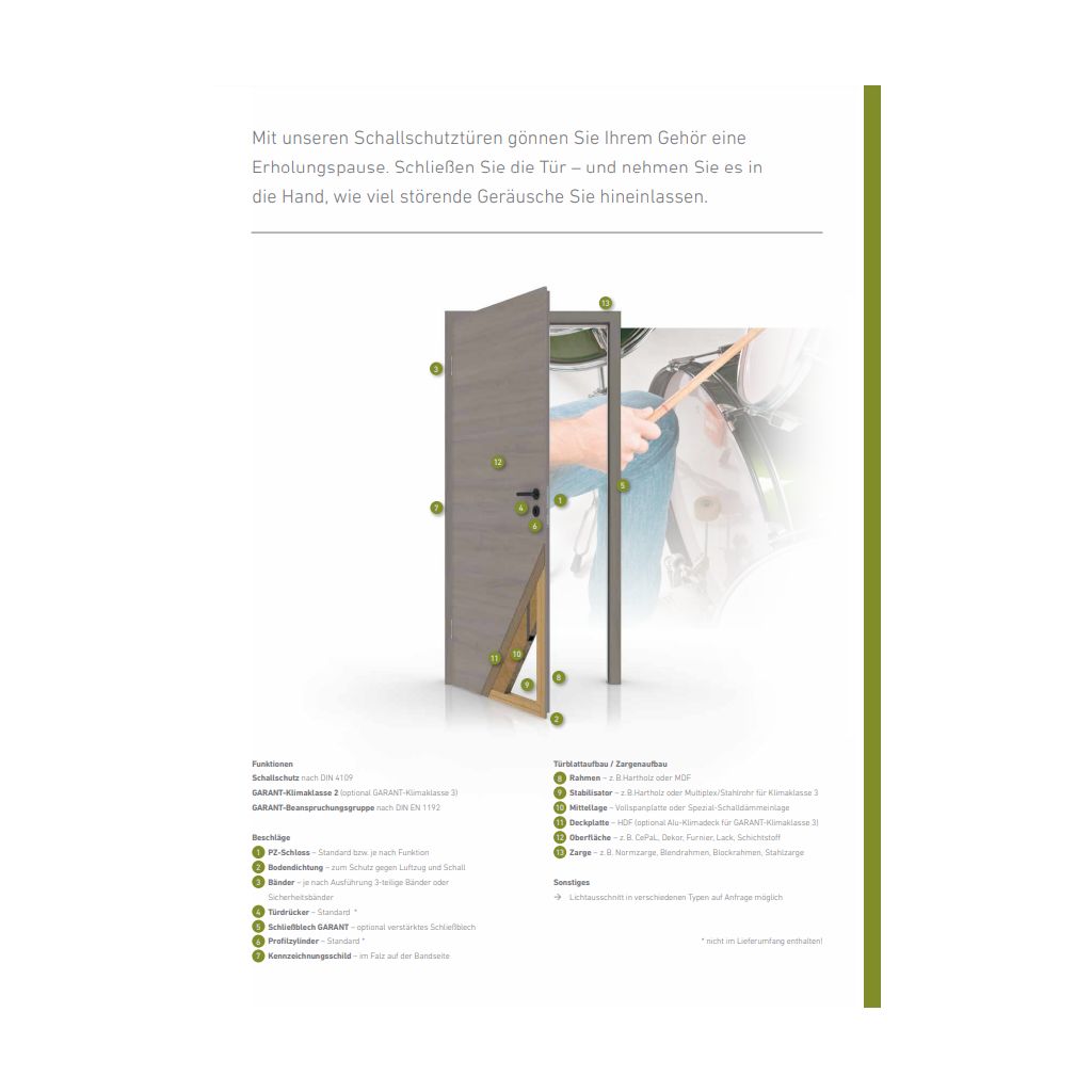 Schallschutzelement mit Holzumfassungszarge, Blendrahmen, Blockrahmen und Stahlzarge/ Schallschutz: Rw >= 42dB nach DIN 4109