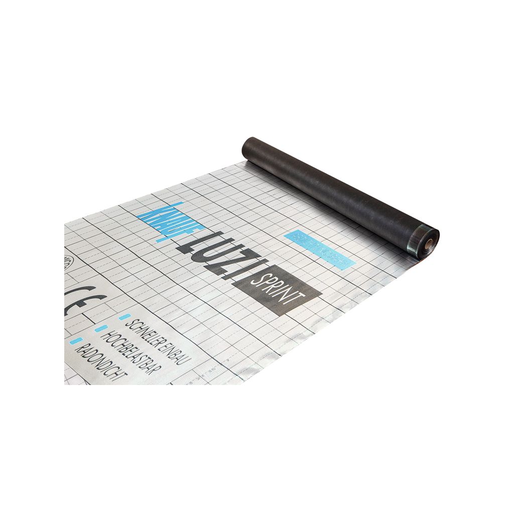 Luzi Sprint Abdichtungsbahn ist eine bitumenfreie Aluminiumverbund- Abdichtungsbahn. Sie ist 50 m lang und 1,50 m breit. An den Längsstößen besitzt sie jeweils eine 5 cm breite Klebenaht (oben bzw. unten).Robust und widerstandsfähig