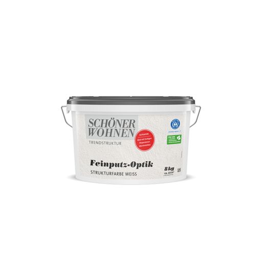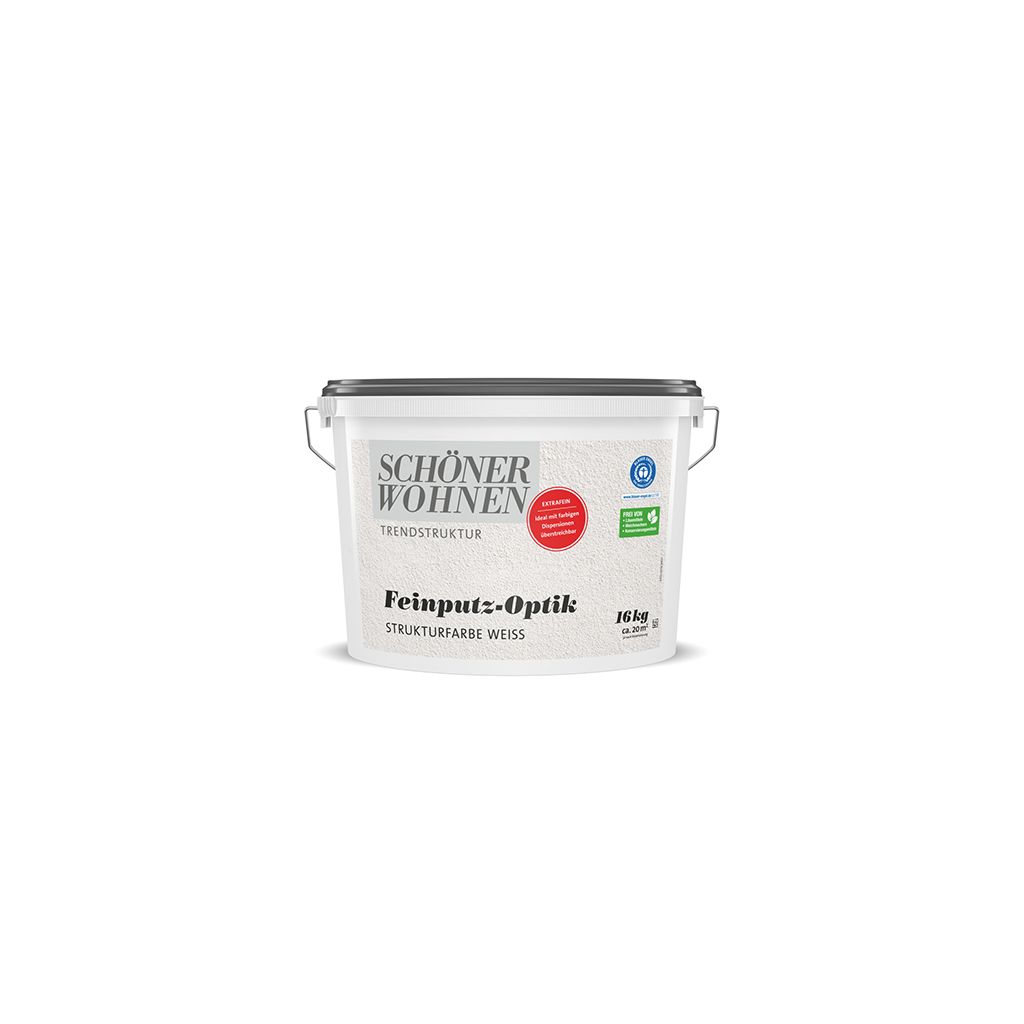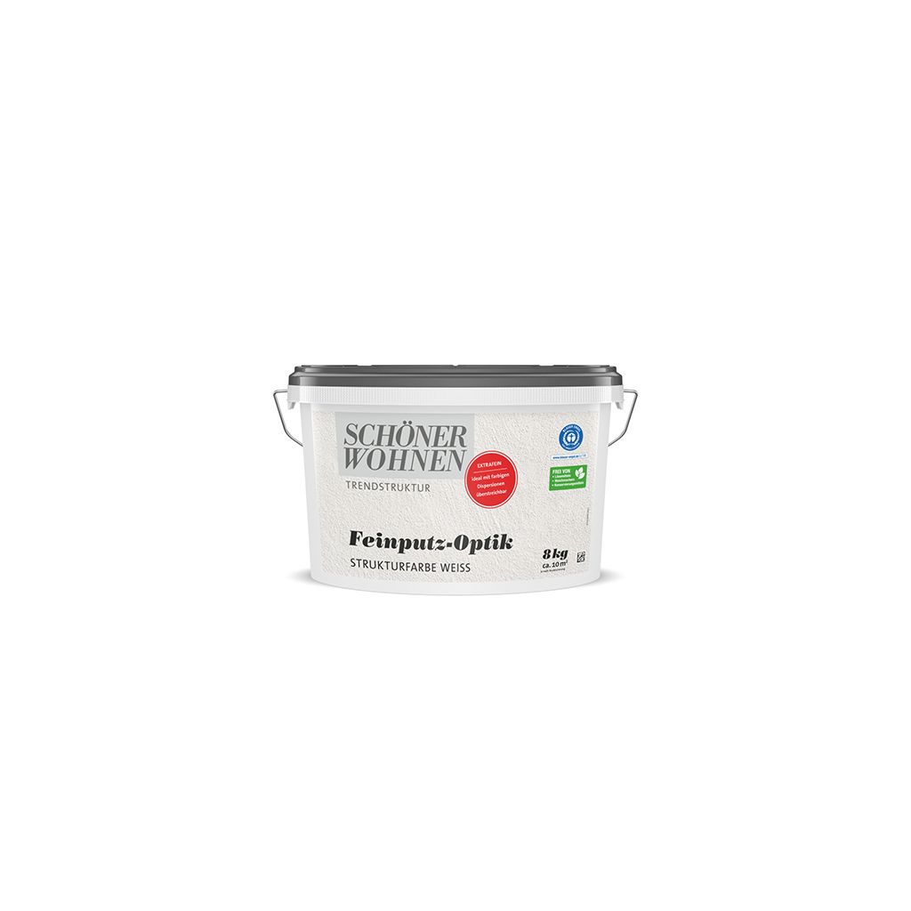 Feinputz-Optik Strukturfarbe extrafein ist eine weiße, gut deckende, strapazierfähige, wasserdampfdurchlässige sowie geruchsneutrale Strukturfarbe. Sie enthält keine Konservierungsmittel und ist auch für Allergiker geeignet. Die besonders feine, körnige Putzstruktur auf Basis mineralischer Füllstoffe ermöglicht Ihnen eine individuelle, unkomplizierte und schnelle Wandgestaltung im Innenraum. Sie können die Feinputz-Optik Strukturfarbe extrafein als weiße Fläche stehen lassen oder diese anschließend mit SCHÖNER WOHNEN Trendfarben überarbeiten.Geeignete Untergründe sind z. B. alte Dispersionsfarbenanstriche sowie Putz, Gipskarton- und Zementfaserplatten.