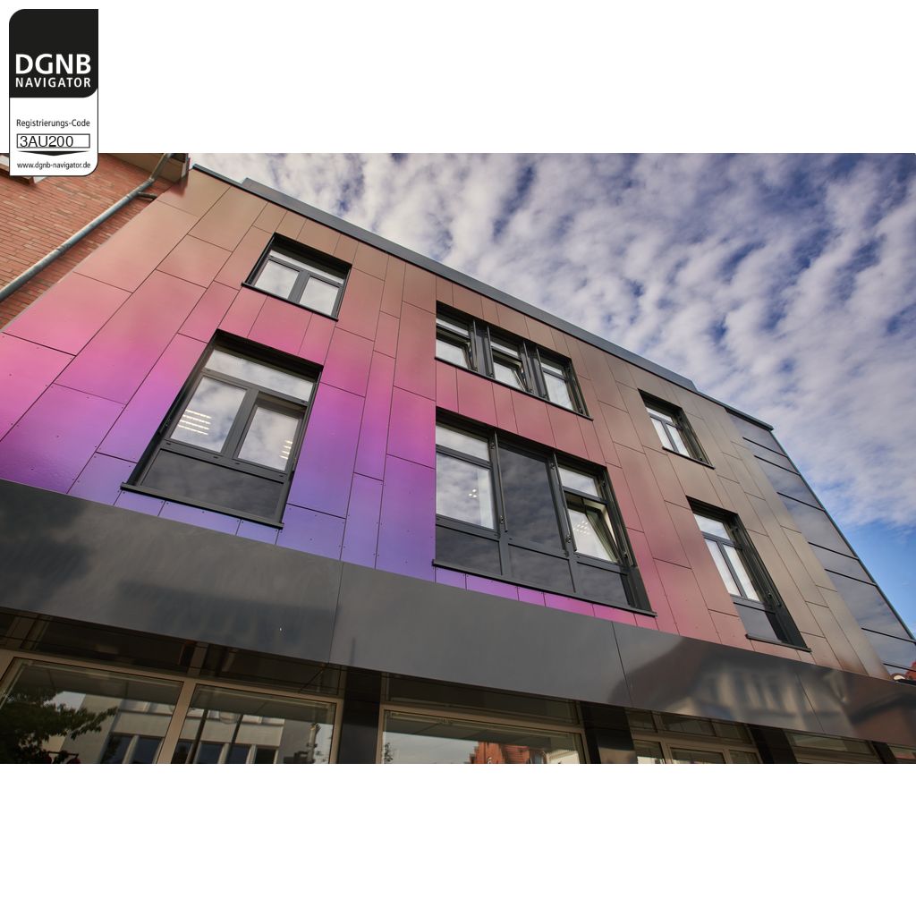 Advanced Metals bietet Designs, die jeder Fassade ein unverwechselbares Patina-Aussehen verleihen. Glatte Oberflächen mit Industriecharakter in Farbtönen wie Bronze, Kupfer oder Titanium.