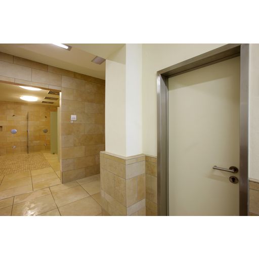Feuchtraumtür, RAL - geprüft.Ab der Beanspruchungsklasse "S“ wlw. "E" erfüllt der Typ KT40-0/1 die mechanischen Anforderungen, für schwere und extreme Beanspruchung nach der vorgegeben Güteklasse.