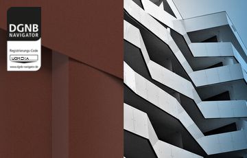 Beschichtung auf Stahl- und Aluminiumuntergründen sowohl für den Fassaden- wie auch InnenbereichBezug zum DGNB System