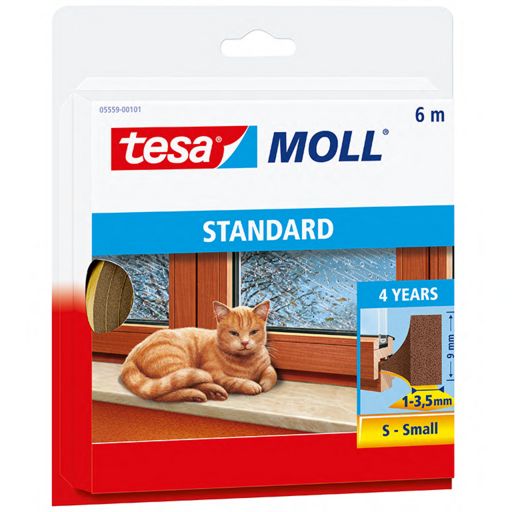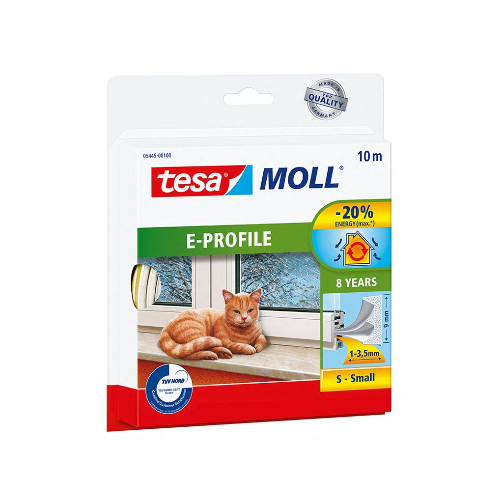 Mit der anpassungsfähigen tesamoll® P-Profil Gummidichtung können Sie größere Spalten in Fenstern und Türen abdichten und dadurch bis zu 35% Energie einsparen (bei entsprechender Spaltabdeckung). Dank der überlegenen tesa®-Klebetechnologie ist die Montage des Dichtungsstreifens ein echtes Kinderspiel. Außer einem Teppichmesser oder einer Schere benötigen Sie kein Werkzeug. Die Dichtung hat eine lange Haltbarkeit und lässt sich nach dem Gebrauch problemlos wieder entfernen. Die Gummidichtung schützt nicht nur vor Zugluft, sondern auch vor Geräuschen und Gerüchen.Dokumente