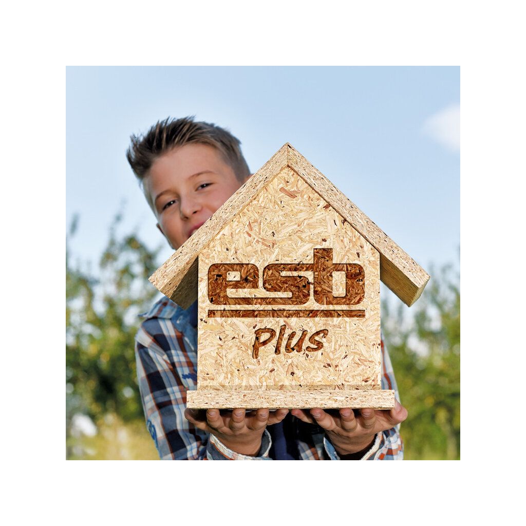 esb-Plus Die wohngesunde Bauplatte von elka-Holzwerkeesb-Plus überzeugt durch hervorragende Emissionswerte mit technischen Vorteilen in Kombination mit einer großen Anwendungsbreite. Die mittelständischen, im Hunsrück beheimateten elka Holzwerke verwenden für die esb PLUS ausschließlich Fichtenhackschnitzel aus eigenen Sägewerken. „Nur so können wir garantieren, dass sich kein Altholz und keine Kiefer in den Platten befindet“, sagt Geschäftsführer Karl-Robert Kuntz. Denn auch die harzreiche Kiefer führt zu Ausdünstungen, die das Wohnraumklima belasten. Die Fichten stammen aus nachhaltiger Forstwirtschaft mit PEFC-Siegel. Eine spezielle Verfahrensweise garantiert eine Formaldehydemission der Platte unter 0.03 ppm für den RAL-zertifizierten Holzbau. Einzigartig auch der Einsatz eines recycling- und verarbeitungsfreundlicher MUF-Leim ohne Isocyanate.