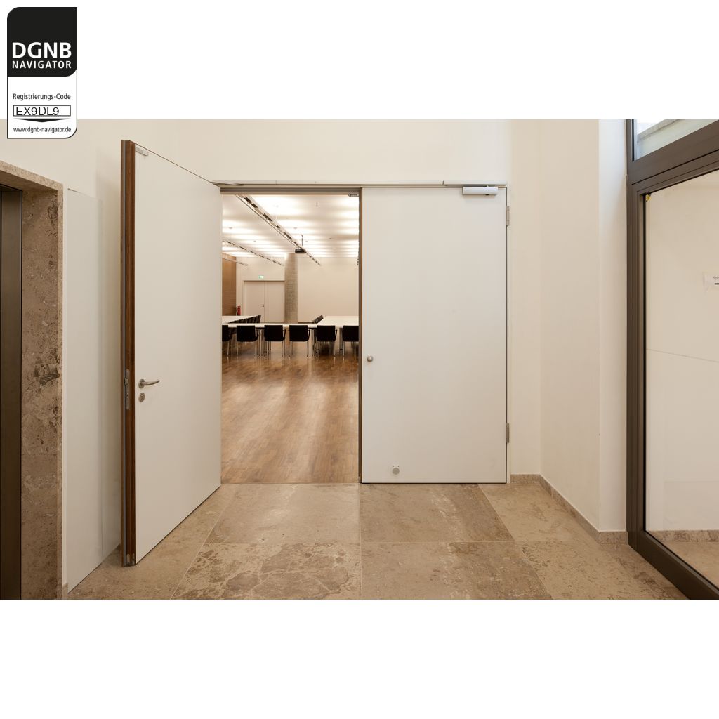 Der obenliegende Türschließer GEZE TS 5000 ist für 1-flügelige rechte und linke Anschlagtüren mit größeren Flügelbreiten bis 1400 mm bzw. für 2-flügelige Türen bis 2800 mm Bandabstand und für den Einsatz an Feuer- und Rauchschutztüren zugelassen.Bezug zum DGNB System