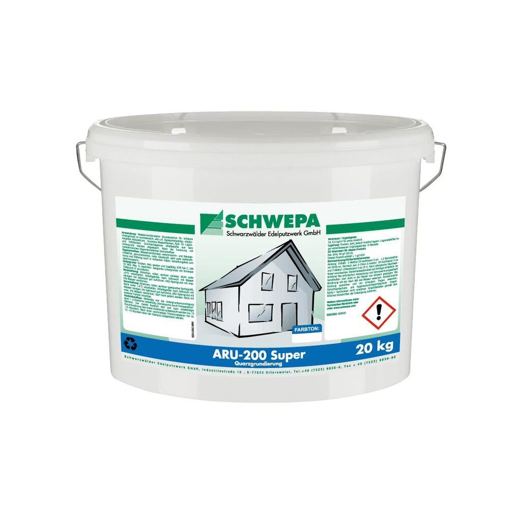 SCHWEPA ARU-200 Super Quarzgrundierung ist ein spritz- und streichfähiger, weißlasierender, quarzsandhaltiger Vor- und Zwischenanstrich. Einsetzbar auf tragfähigen mineralischen Außenund Innenflächen wie kalk-, kalkzement und gipshaltigen Unterputzen der Mörtelgruppen P I bis P IV, Beton, Faserzement und tragfähigen Dispersionsanstrichen. Universell einsetzbar als Putzgrund für nachfolgende mineralische Oberputze sowie Dispersions-, Silikat-, Siloxan- und Silikonharzputze, aber auch als Streichputz und Quarzhaftbrücke. Zur Reduzierung und Vereinheitlichung des Saugverhaltens von mineralischen Untergründen. Verbessert die Verarbeitung und Anhaftung nachfolgender Oberputze. Gewährleistet optimale Zwischenhaftung.Kontakt zum Hersteller