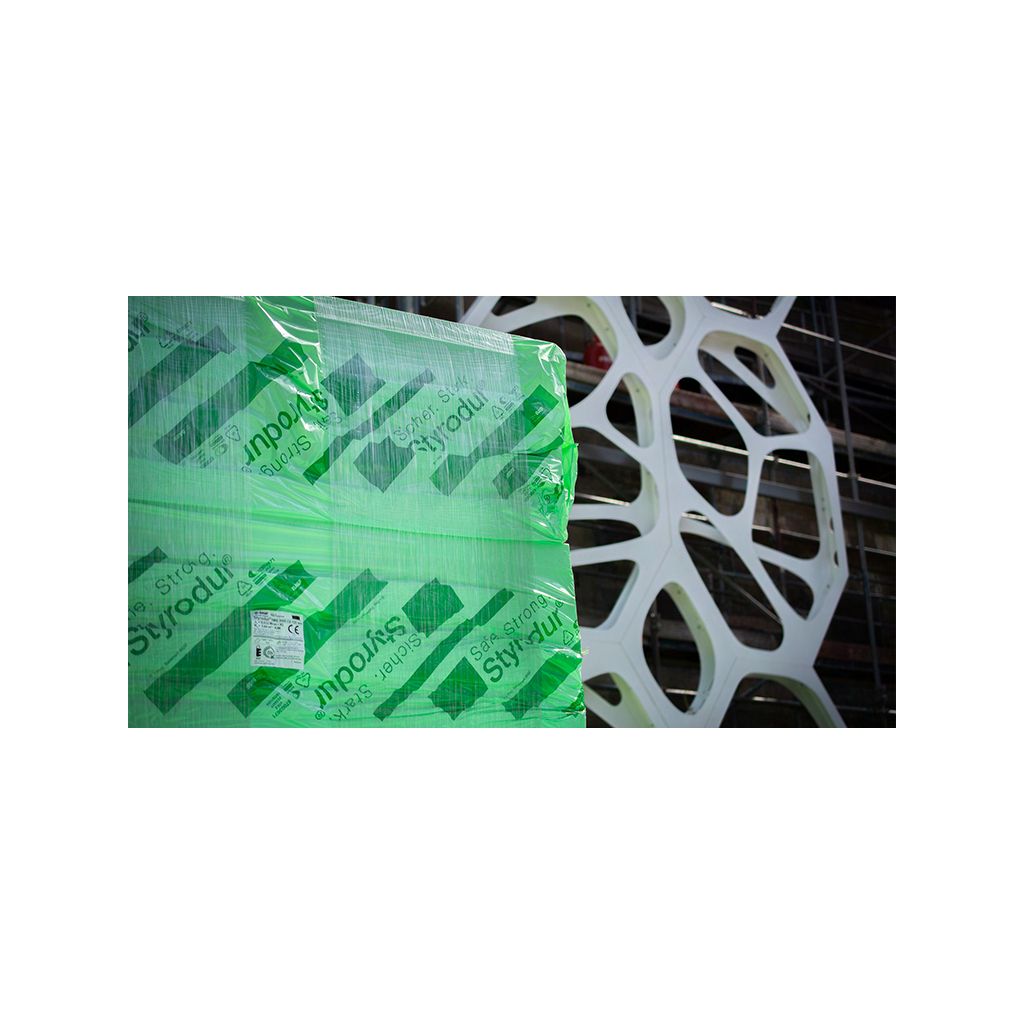 Styrodur® ist ein extrudierter Polystyrolhartschaum entsprechend der DIN EN 13164, der in Form von Platten im Rohdichtebereich von 28 bis 45 kg/m³ produziert wird. Die Platten werden mit einer Druckfestigkeit von 200 bis 700 kPa und im Dickenbereich…