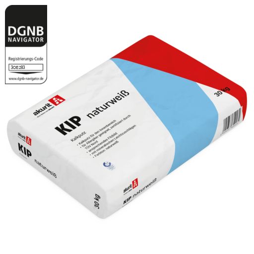 akurit KIP naturweiß Kalkputz ist ein wohngesunder, naturweißer Kalkputz für den Innenbereich. Er kann als Unterputz oder als ein- oder zweilagiger Filzputz im Neubau oder Renovierund Sanierbereich verwendet werden. Er wurde vom TÜV Nord als Allergiker geeigneter Kalkinnenputz ausgezeichnet.Bezug zum DGNB System