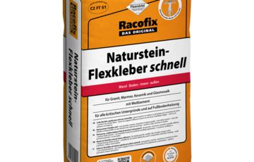 Spachtelmörtel zum Ausgleichen, Glätten und Ausbessern von Wand-, Decken- und Bodenflächen aus Beton (DIN 1045), Putz (DIN 18 550) der Mörtelgruppen P II und P III, Mauerwerk aus Bimsbaustoffen, Ziegel, Kalksandstein sowie Mischmauerwerk. Zum Herstellen von flucht- und lotrechten sowie ebenflächigen Untergründen für das anschließende Verlegen keramischer Belagsbaustoffe sowie Natur- und Betonwerksteine, Cotto, etc. Darüber hinaus auch als Gefällespachtel zum Herstellen einer Gefälleausgleichsschicht bei fehlendem Gefälle des tragenden Untergrundes in Feucht- und Nassräumen, auf Balkonen und Terrassen und auf beheizten Bodenflächen einsetzbar. Im erhärtenden Zustand ist Racofix® Reparatur-Mörtel wasserbeständig, wasserdampfdurchlässig und Frost-Tau-wechselbeständig.Dokumente