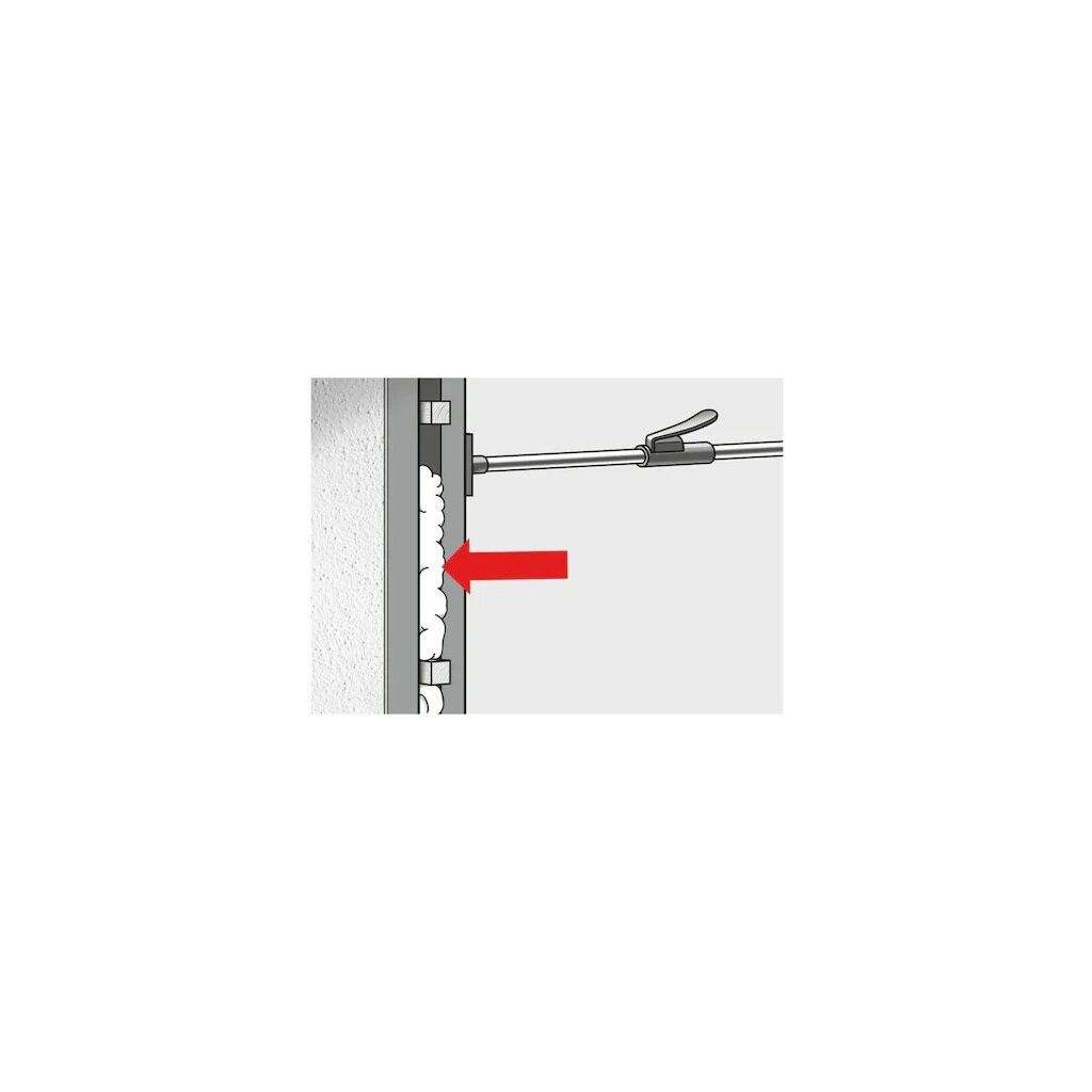 Für die Montage von Tür- und Fensterzargen sind die Bauelemente auszurichten und nach Stand der Technik zu befestigen. Bei Türzargen Spreize setzen. Danach den Schaum an je drei Punkten links und rechts anbringen. Fugen bzw. Hohlräume nur zu ca. 50% ausschäumen, da der Schaum noch aufgeht.