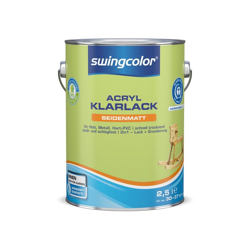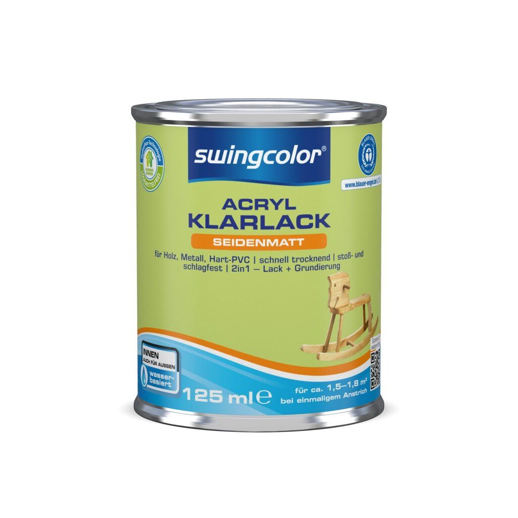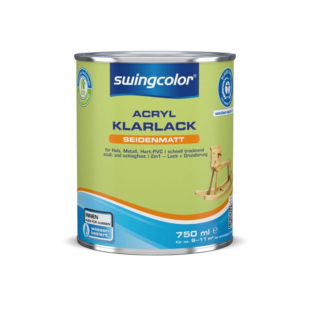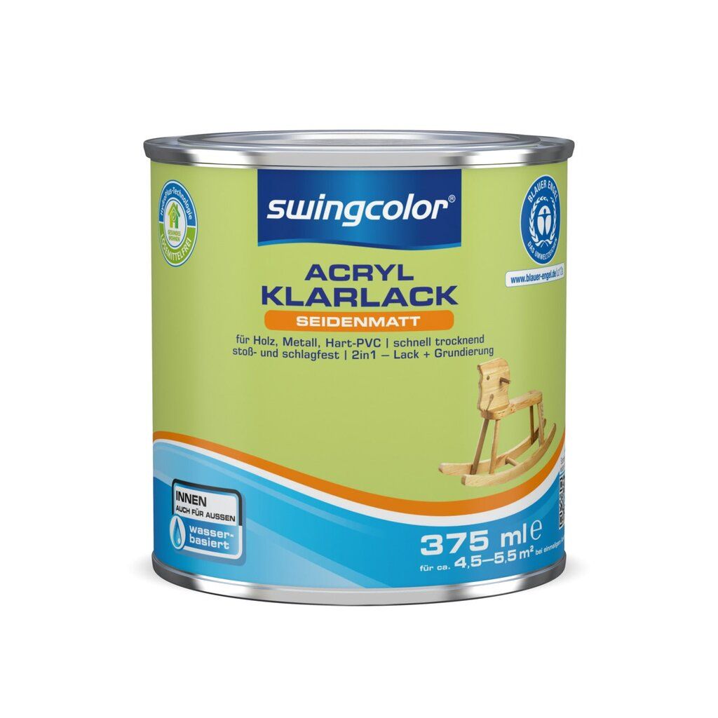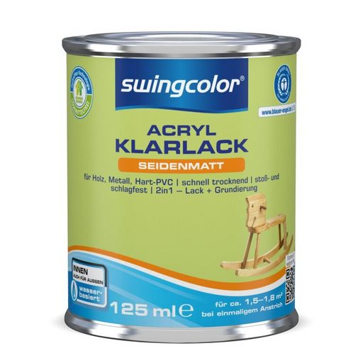 Der swingcolor® Acryl Klarlack seidenmatt ist ein wasserbasierter Acrylat-Lack, der vor allem durch seine Wetterbeständigkeit sowie seine Stoß- und Schlagfestigkeit besticht. Er ist nicht nur schnell trocknend und leicht zu verarbeiten, sondern auch vergilbungsbeständig. swingcolor® Acryl Klarlack seidenmatt kann dabei als direkte Lackierung auf Holz oder als transparenter Überzugslack auf zum Beispiel mit swingcolor® Acryl Buntlack lackierten Flächen zur Verbesserung der mechanischen Oberflächenbelastbarkeit dienen.Geeignet als Lackierung direkt auf Holz oder als transparenter Überzugslack auf lackierten Flächen (z. B. mit swingcolor® Acryl Buntlack) auf z. B. Fenstern, Türen, Profilhölzern, Vertäfelungen, Paneelen, Garagentoren, Zäunen.