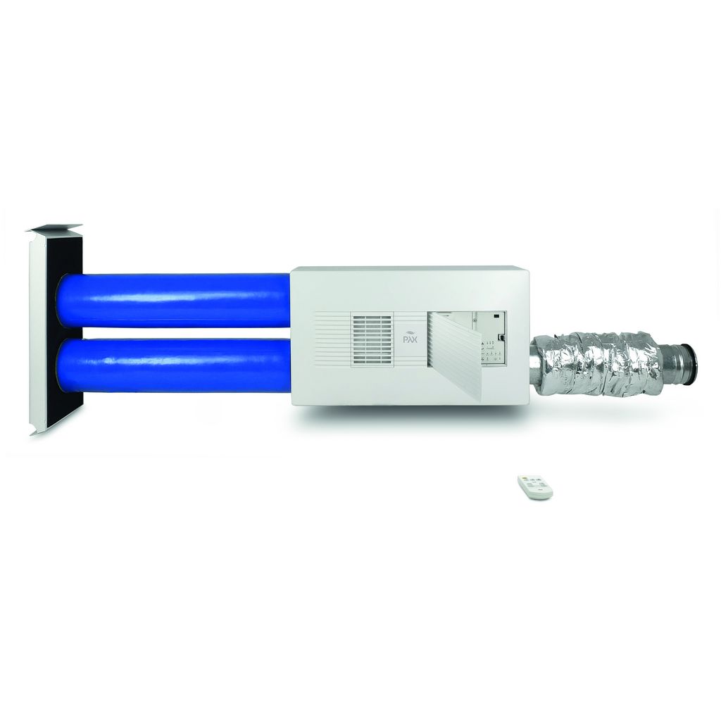 Der PAX ist die Lüftungslösung u. a. für kleine Wohnungen, Hotelzimmer, Micro-Apartments, Studentenwohnheime, Pflegeheime und Seniorenwohnanlagen. Das Hauptmodul wird in den Abluftraum (z. B. im innenliegenden Bad) installiert und bringt über ein Rohrsystem Frischluft in den angeschlossenen Wohnraum. Zuvor wird die frische Zuluft wird mithilfe eines Wärmetauschers angewärmt. Als besonders geräuscharmes Gerät ist er auch für Projekte mit hohen Schallschutzanforderungen geeignet. Dank einer Normschallpegeldifferenz von 77 dB kann auch der Außenschall massiv reduziert werden.Die Stärke des Luftstromes wird automatisch reguliert. So wird bei Feuchtespitzen mehr Luft transportiert, bei Abwesenheit der Bewohner läuft der PAX nur auf niedriger Stufe. Durch die kontinuierliche Lüftung wird Feuchtigkeit abtransportiert und Schimmel vorgebeugt. Unterschiedliche Betriebsmodi können individuell eingestellt und per Fernbedienung verändert werden. Im Comfort-Modus wird die Zuluft auch im Winter auf 18 Grad erwärmt, im Eco-Modus erfolgt nur ein minimaler Einsatz bei Bedarf.