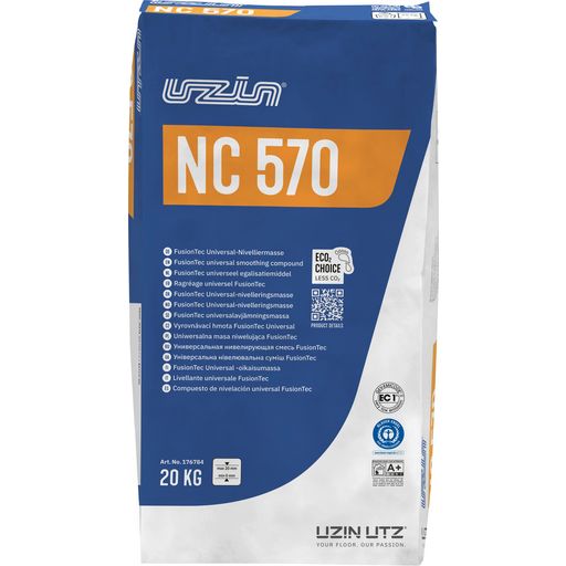 UZIN NC 570 FUSIONTEC UNIVERSAL-NIVELLIERMASSE ist eine Selbstverlaufende, nahezu spannungsfreie und schnell belegreife Bodenspachtelmasse für alle Bodenbeläge und Parkett für Schichtdicken von 0 – 20 mmLange Verarbeitungszeit, speziell für die Pumpanwendung mit schneller Belegreife,