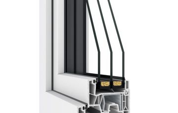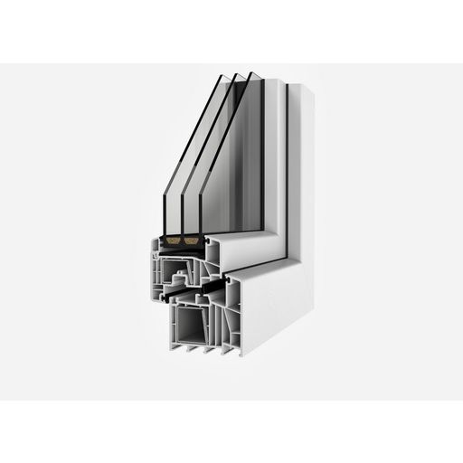 Kunststfffenster 76 mm Bautiefe Rahmen mit 2-fach-Verglasung mit Ug = 1,1 W/m2K und Uw = 1,1 W/m2K oder 3-fach-Verglasung mit Ug = 0,5 W/m2K und Uw = 0,73 W/m2K. Schallschutzwerte von 33 dB bei Zweifach-Glas und 35 dB bei Dreifach-Glas (optional bis…