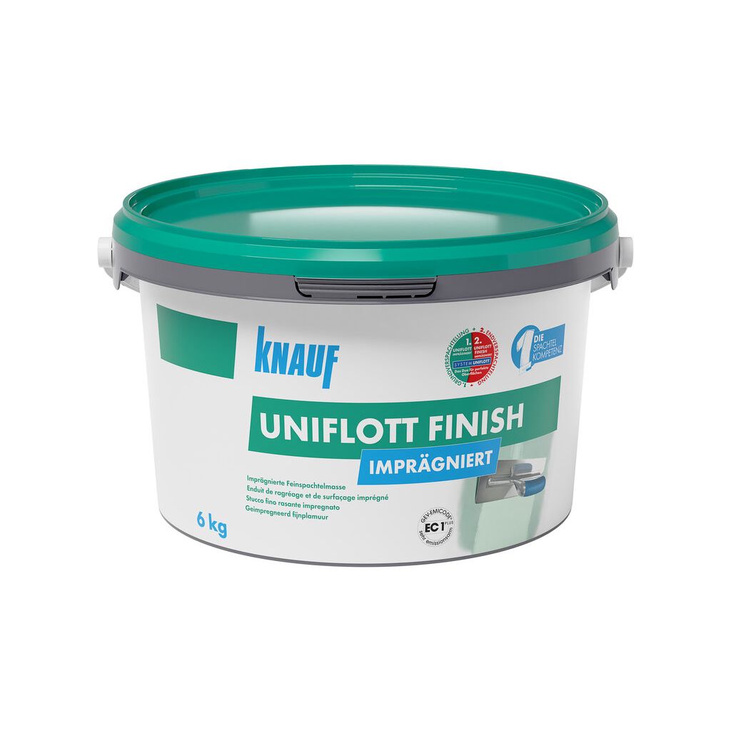 Knauf Uniflott Finish imprägniert ist eine Feinspachtelmasse zur Endverspachtelung von imprägnierten Gipsplattenfugen im System Uniflott. Die Basis bildet Knauf Uniflott imprägniert – damit werden die Fugen gefüllt. Mit Knauf Uniflott Finish imprägniert sorgen Sie anschließend für das ideale Oberflächenfinish. Ein großer Vorteil ist, dass Knauf Uniflott Finish imprägniert gebrauchsfertig ist – somit gibt es keine Anmisch- und Reifezeiten und Sie können sofort loslegen. Die Spachtelmasse hat außerdem eine geschmeidige Konsistenz, ist leicht schleifbar und trocknet schnell – nicht nur für Profi-Handwerker sehr leicht zu verarbeiten- Leichtgängig zu verarbeiten, durch geschmeidige Konsistenz