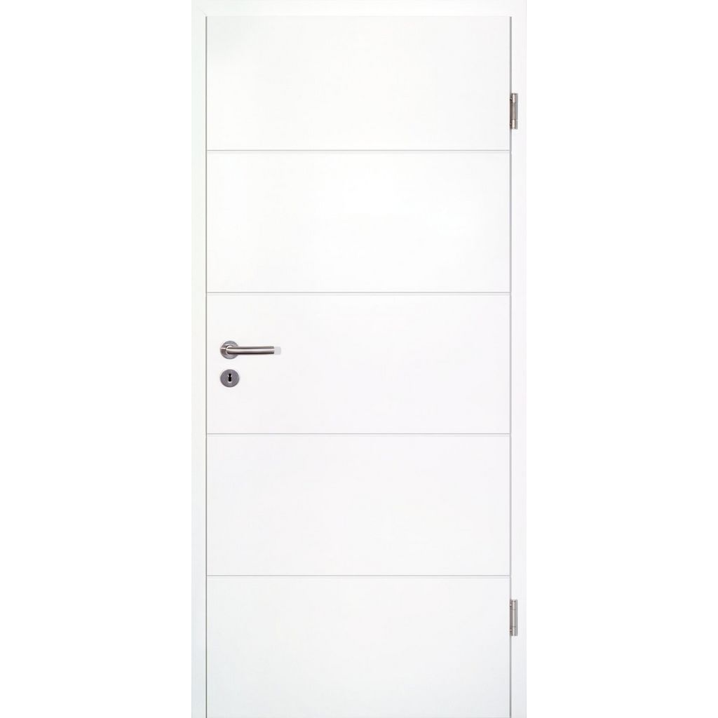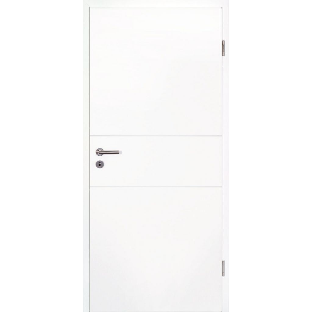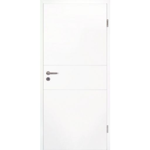 Dezente horizontalen Oberflächenfräsungen (1 mm) geben der Weiß lackierten Oberfläche dieser Tür eine besonders elegante Note. Die angenehm glatte und sanfte Oberfläche kennzeichnet den Charakter der weiß lackierten Türen WL10 (nach RAL 9010). Vor allem Liebhaber zeitloser Eleganz schätzen diesen exklusiven Look und die angenehme Haptik. Dank ihres mehrschichtigen Lackaufbaus sind weiß lackierte Oberflächen äußerst widerstandsfähig. Ihre Einrichtung ist modern, offen, pur, zurückhaltend und Sie legen Wert auf klare Formen? Dann sind unsere Designtüren genau auf Ihrer Linie.Oberflächen: Weiß lackiert