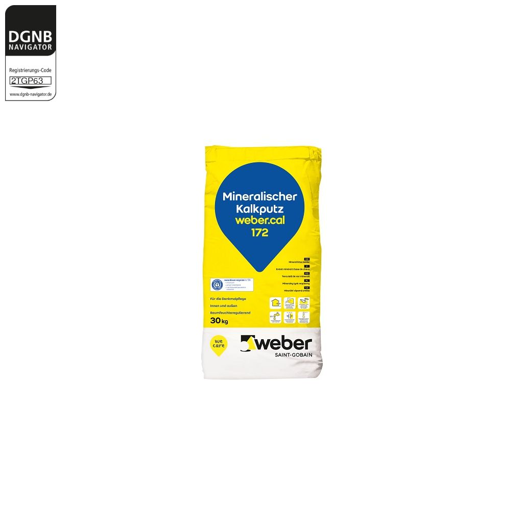 weber.cal 172 wird innen und außen, auf neue und alte Putzgründe zur Herstellung eines Einlagenputzes oder Unterputzes verwendet. Auf weber.cal 172 können alle mineralischen und organischen Oberputze, lösungsmittelfreie Anstriche von Weber sowie Fliesen aufgebracht werden.Bezug zum DGNB System