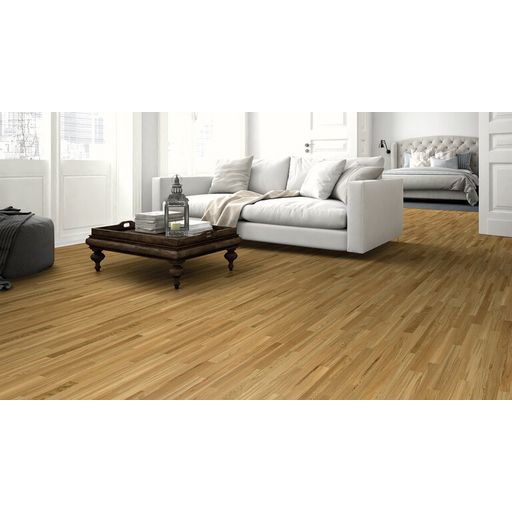 Die Optik und Abmessungen des Parketts orientieren sich an traditionellem Stabparkett, während der Mehrschichtaufbau das Quell- und Schwindverhalten deutlich minimiert. Eine Edelholznutzschicht schont Ressourcen und die geringe Materialstärke macht das Produkt ideal für Neubauten, Sanierungen und moderne Fußbodenheizsysteme.