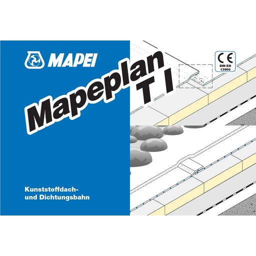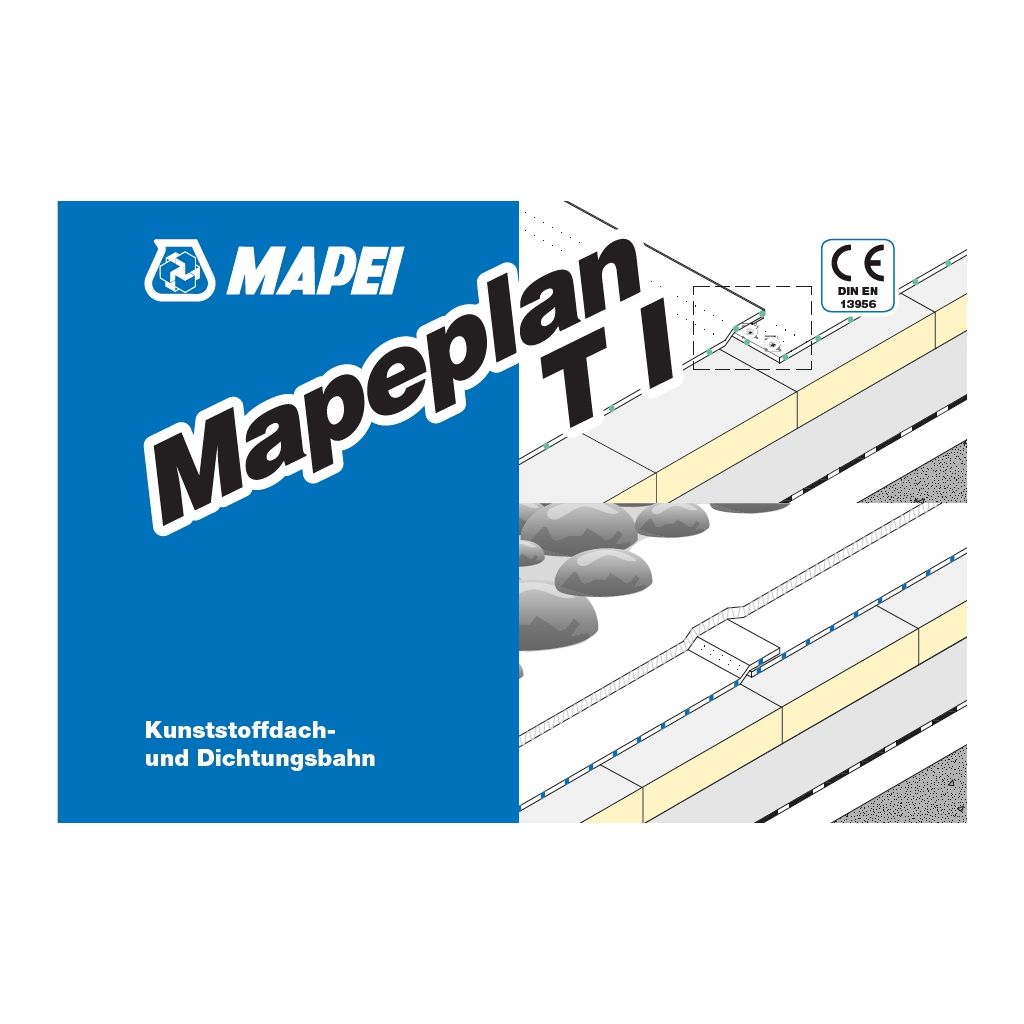 Mapeplan T I Kunststoffdach- und Dichtungsbahnen sind einsetzbar für die lose Verlegung unter Kiesauflast und/oder Begrünung, sowie zur mechanischen Befestigung frei bewittert und zeichnen sich durch folgende Qualitätsmerkmale aus: -hervorragende Sonnenlichtreflektion (cool roof) -frei von Weichmachern und toxischen Schwermetallen -frei von haogenierten Flammschutzmitteln -Bitumenverträglich nach DIN -Dämmstoffneutral -hervorragende Schweißeigenschaften -hohe mechanische Widerstandsfähigkeit -hervorragende Kältebeständigkeit -hohe Alterungsbeständigkeit -hohe Beständigkeit gegen Witterungseinflüsse (UV-Strahlung) -umfangreiches Produktzubehörsortiment -Wurzel- und Rhizombeständig (FLL geprüft) -RecyclebarDokumente