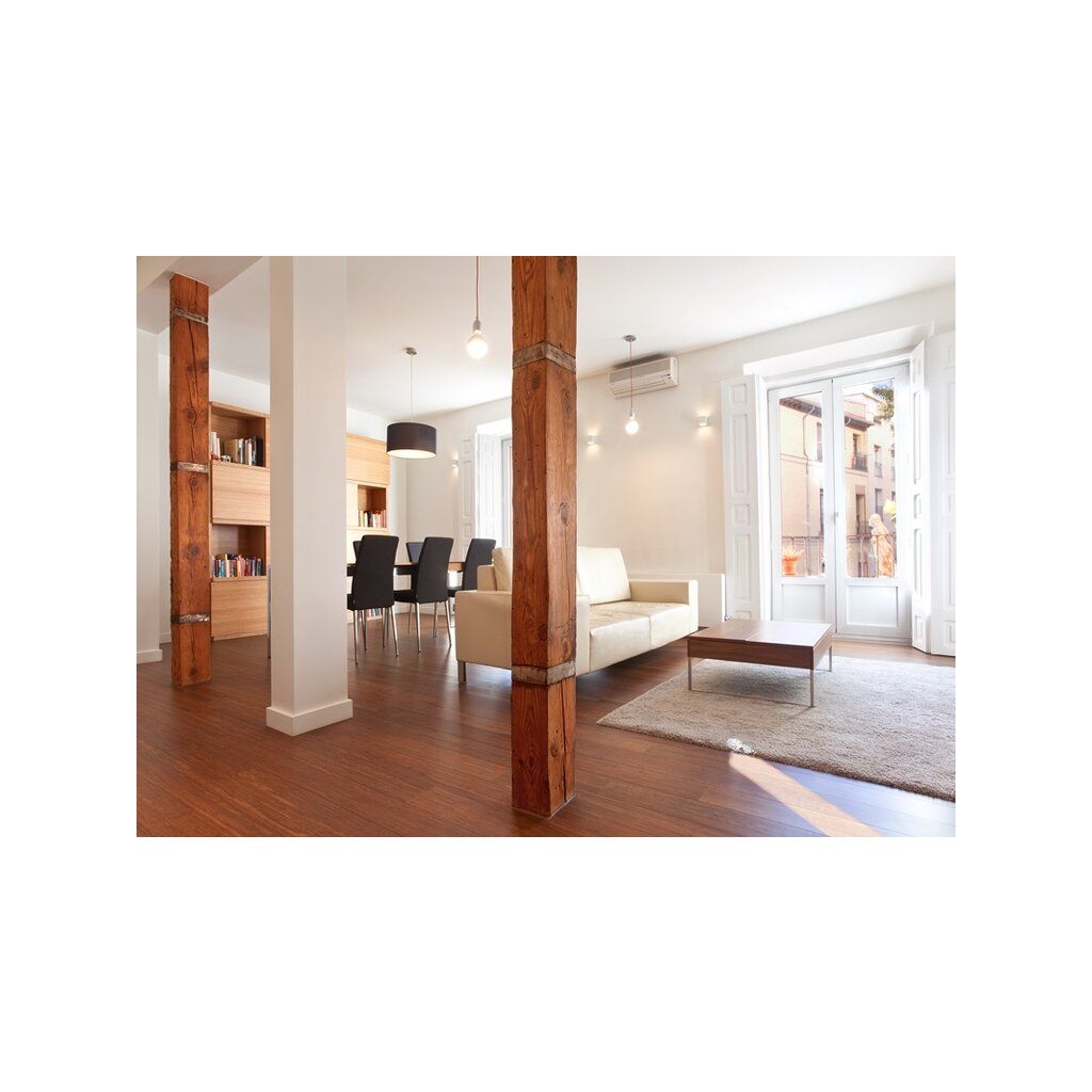ist für Liebhaber von natürlichem und robustem Bambusparkett geeignet, aber auch für diejenigen, die eine großzügige und stilvolle Einrichtung lieben. Die großen Fußbodendielen vervollkommnen Ihre Einrichtung