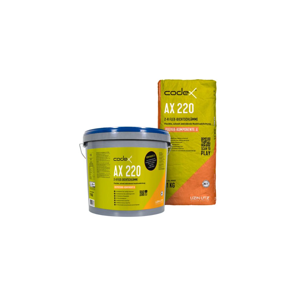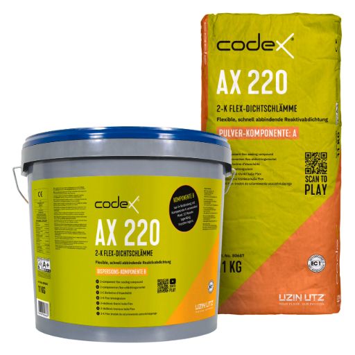 codex AX 220 ist eine Faserverstärkte und schnell trocknende 2-K FlexDichtschlämme, als Verbundabdichtung zum Schutz für feuchte- und nassbelastete Bauteile, vor dem Verlegen von keramischen Fliesen, Natur- und Betonwerkstein sowie für Bauwerksabdichtungen im Keller- und Sockelbereich. Für Wand und Boden im Innen- und Außenbereich.PRODUKTVORTEILE / EIGENSCHAFTEN: