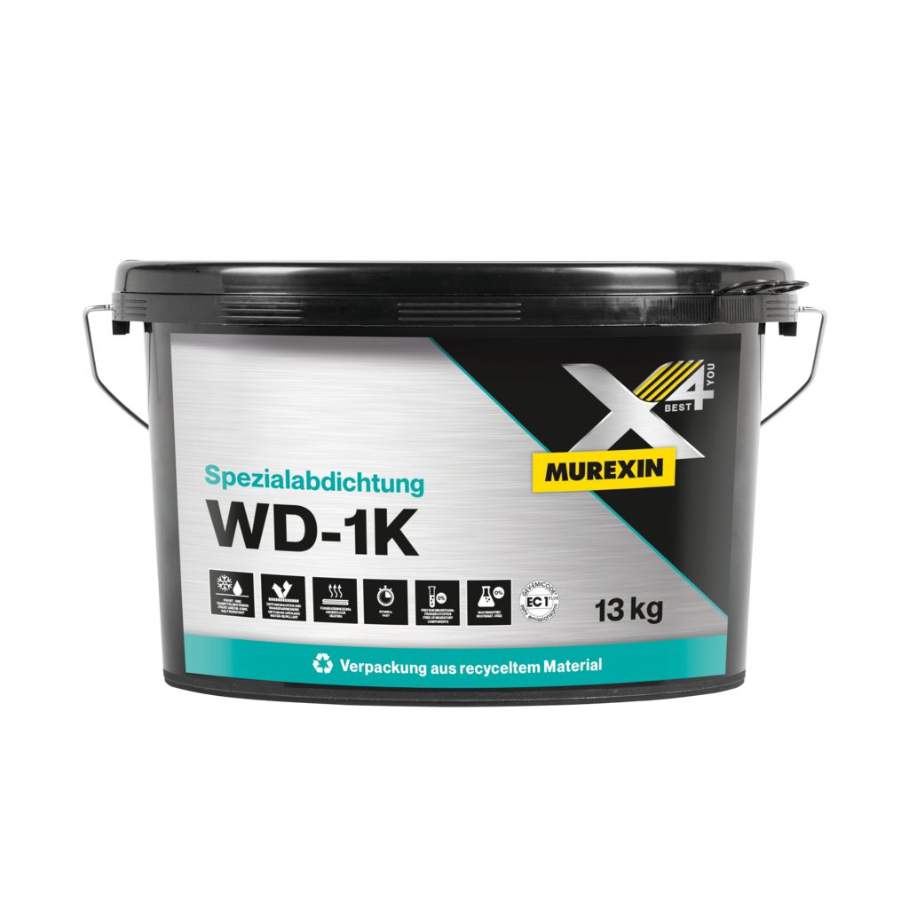 Das Produkt ist einkomponentig und somit gebrauchsfertig eingestellt. Daher ist kein Anmischen mehr erforderlich. Bei der Verarbeitung ist die Spezialabdichtung WD-1K mit dem je nach dem Einsatzzweck geeigneten Werkzeug vollflächig aufzutragen. Die Verarbeitungszeit beträgt je nach Temperatur und Luftfeuchte ca. 30 - 40 Minuten.Die Abdichtungsmembrane wird normgerecht vliesarmiert hergestellt.
