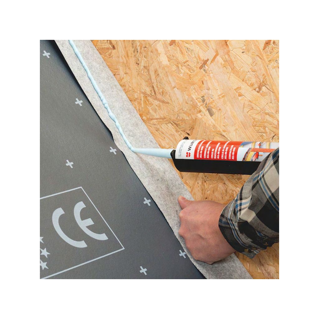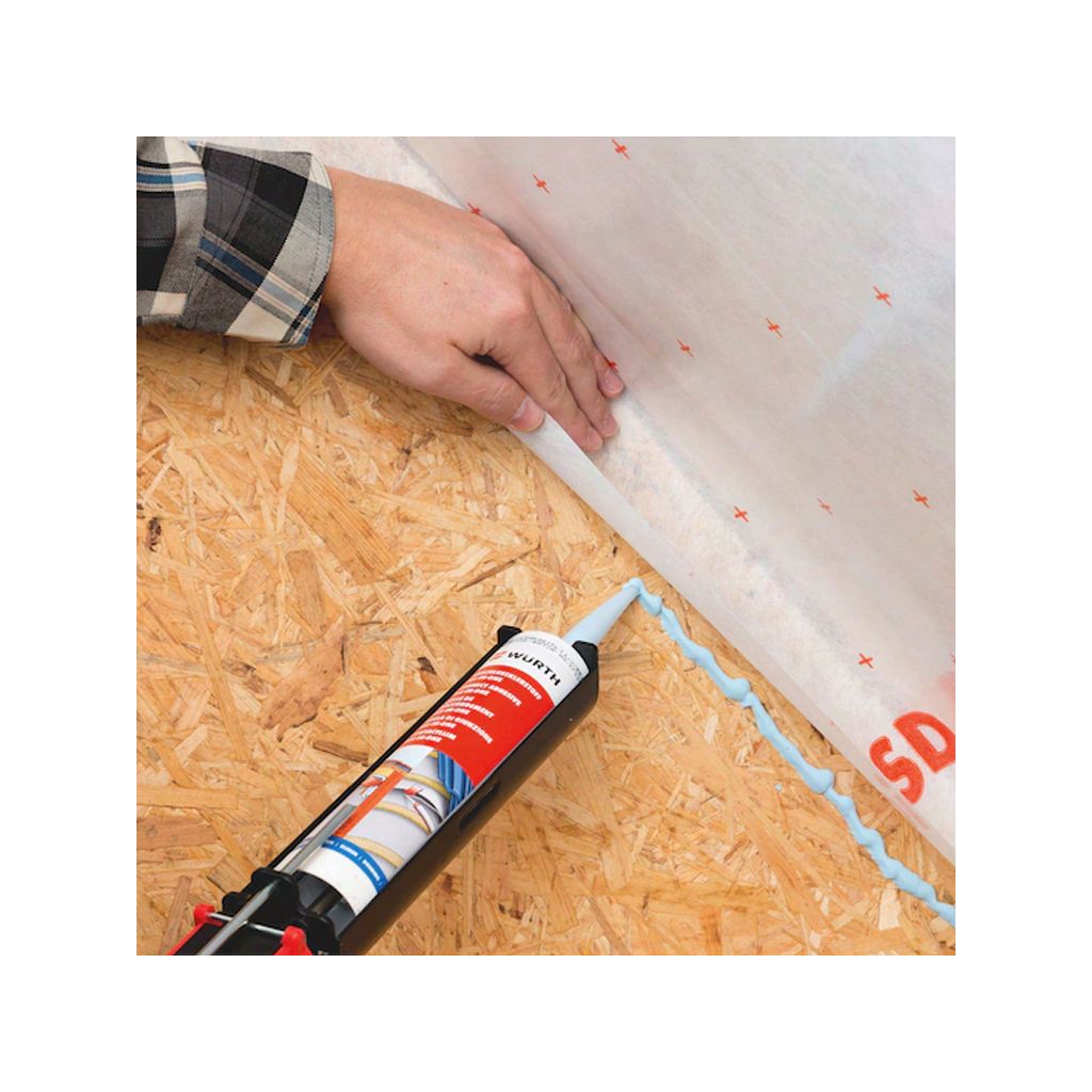 Dauerelastische, luftdichte Fugen-, Bauteilanschluss- und Stoßüberlappungsverklebung/-Abdichtung im Luft- und Winddichtbereich und bei der Fenster- und Türenmontage.