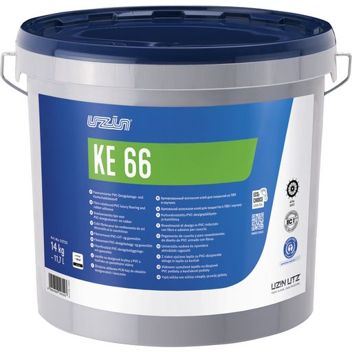 UZIN KE 66 ist ein Faserarmierter Nass-Klebstoff. Hoch scherfester PVC-und Gummiklebstoff mit harter Klebstoffriefe. UZIN KE 66 ist ein Nassbett-Dispersionsklebstoff mit kurzer Ablüftezeit und exzellenter Saughaftung. Der hoch scherfeste und faserarmierte Klebstoff verringert dasResteindruckverhalten elastischer Bodenbeläge auf ein Minimum. Für den Innenbereich.