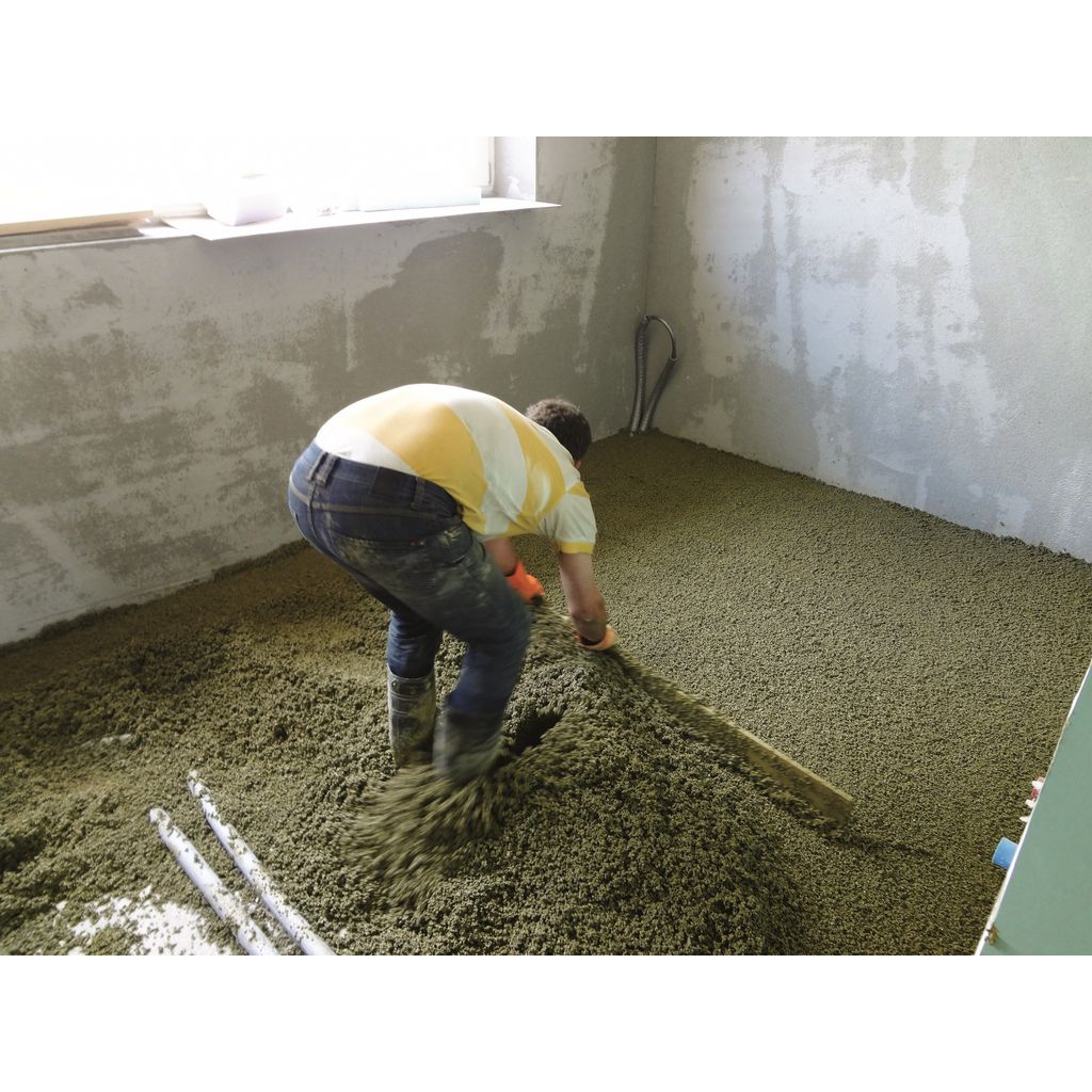 Styroporgranulat und Binder sind in der Verpackungsgröße aufeinander abgestimmt. Zum Mischen und Fördern können handelsübliche Estrichpumpen verwendet werden. Es wird zuerst das Styropor in den Kessel gefüllt, ein Teil des Anmachwassers und dann der Binder Sika® Compound-50 zugegeben. Nach einer Mischzeit von ca. 2 Minuten wird das erdfeuchte Material an den Einbauort gefördert. Das Material wird im Raum verteilt und auf Sollhöhe abgezogen und leicht bis zum Druckpunkt verdichtet. Das lose Material muss ca. 15 % über das gewünschte Niveau vor der Verdichtung abgezogen werden.Bezug zum DGNB System