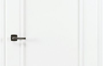 Weiße Eleganz im Stiltüren-Design duch aufgesetzte Leisten. Das klassische, zeitlose Profil der zweistufigen Aufsatzrahmen sorgt für eine vornehme Optik.