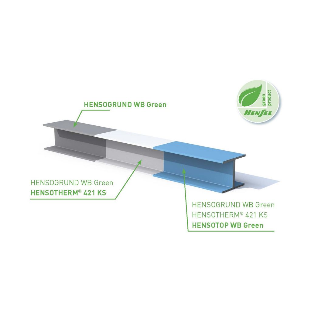 HENSOGRUND WB Green ist eine wasserbasierende, 1-komponentige Acryl-Grundierung für handentrostete, verzinkte oder gestrahlte Stahlprofile (ausgenommen Gussstützen).Sie dient als Korrosionsschutz vor der Applikation einer Brandschutzbeschichtung, siehe kombinierbare Produkte. Sie ist geeignet für nachhaltiges Bauen, wie DGNB oder Minergie-(A-/P-)Eco; VOC-Emissionsklasse A+, AgBB-geprüft, ist kennzeichnungsfrei, frei von Halogenen, TCEP, SVHC, Blei, Kadmium, Quecksilber, Brom, Silikon und Weichmachern.