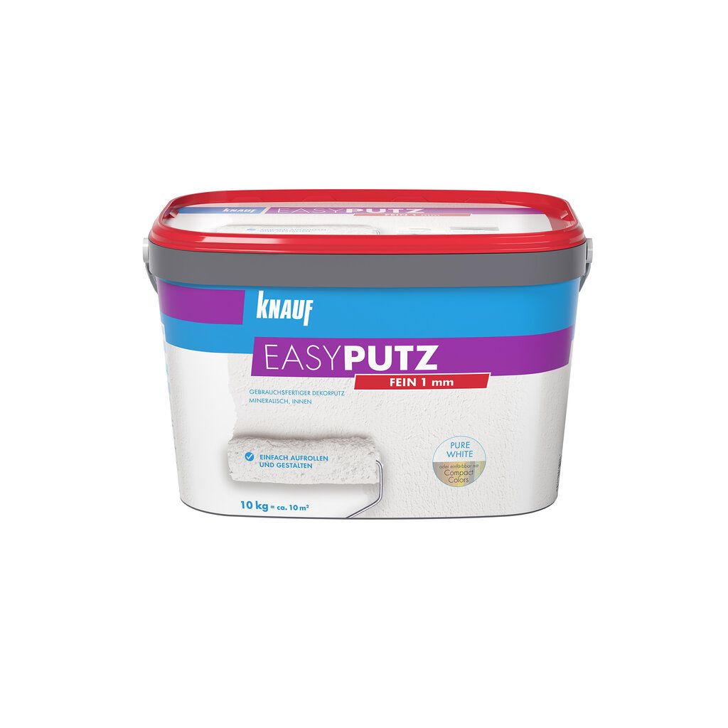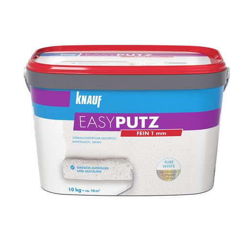 Knauf EASYPUTZ ist ein gebrauchsfertiger Dekorputz, den Sie ganz einfach mit einer Rolle auftragen können. Dank 50 % Marmoranteil sorgt der schneeweiße, matte Oberputz zudem für beeindruckende Akzente in der Wohnraumgestaltung und lässt sich mit Knauf Compact Colors einfach durchfärben.Dokumente