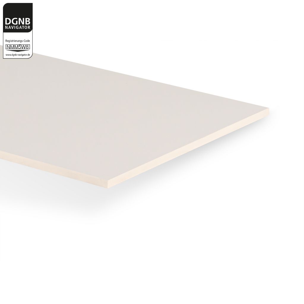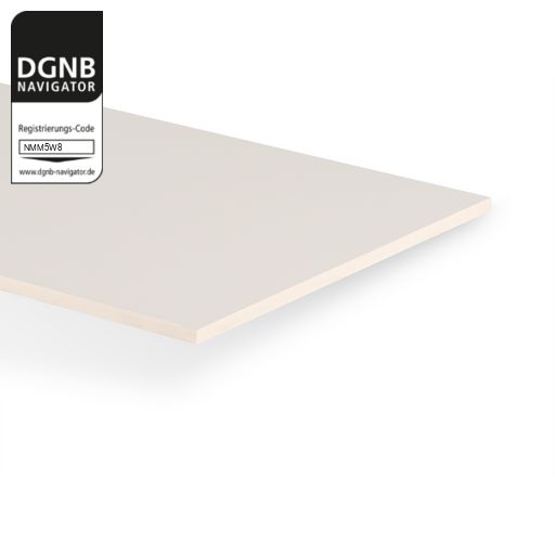 Compact-Hochdruckschichtstoff in Standard-Qualität gemäß EN 438-9:BCS.Mit homogen weiß gefärbtem Kern und beidseitig dekorativer Melaminharzoberfläche.