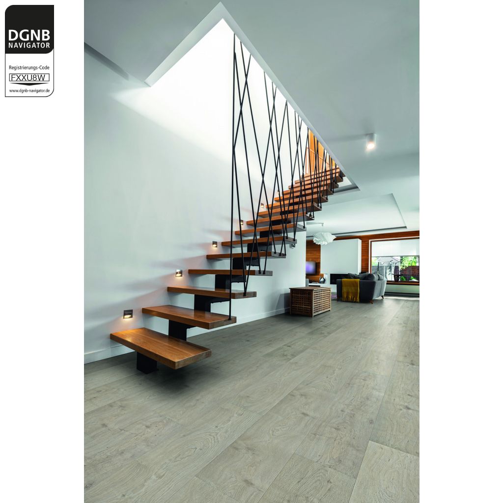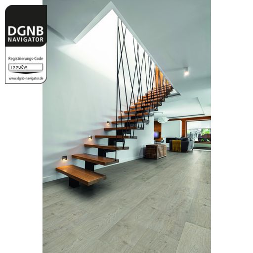 TRITTY 200 Aqua erfüllt die Ansprüche der Nutzungsklasse 23/ 33 und ist deswegen für alle Wohnbereiche und gewerbliche Bereiche mit starker Beanspruchung geeignet. Die Böden verfügen über einen erhöhten Feuchtigkeitsschutz und sind besonders strapazierfähig. Also der ideale Laminatboden für Flure, Küchen, Wohnzimmer und sogar Badezimmer.Bezug zum DGNB System