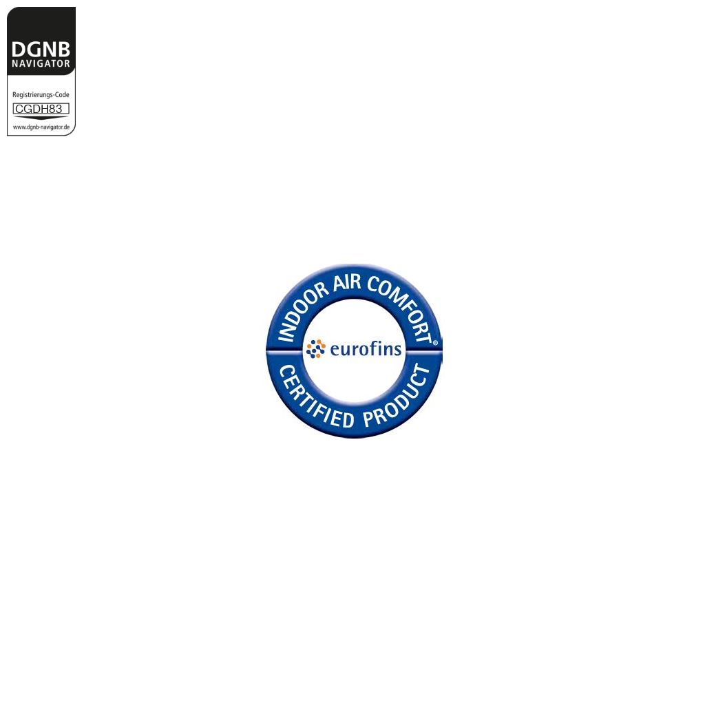 Eurofins ist die weltweit führende Organisation im Bereich der Produktemissionsprüfungen. Eine Eurofins Indoor Air Comfort Zertifizierung versichert, dass alle produktbezogenen Gesundheitskriterien an Produktemissionen hinreichend erfüllt werden. Sie ist ein Zeichen zur Bestätigung des Qualitätsanspruches des Herstellers und dessen Beitrages zu einem gesunden Innenraumklima.
