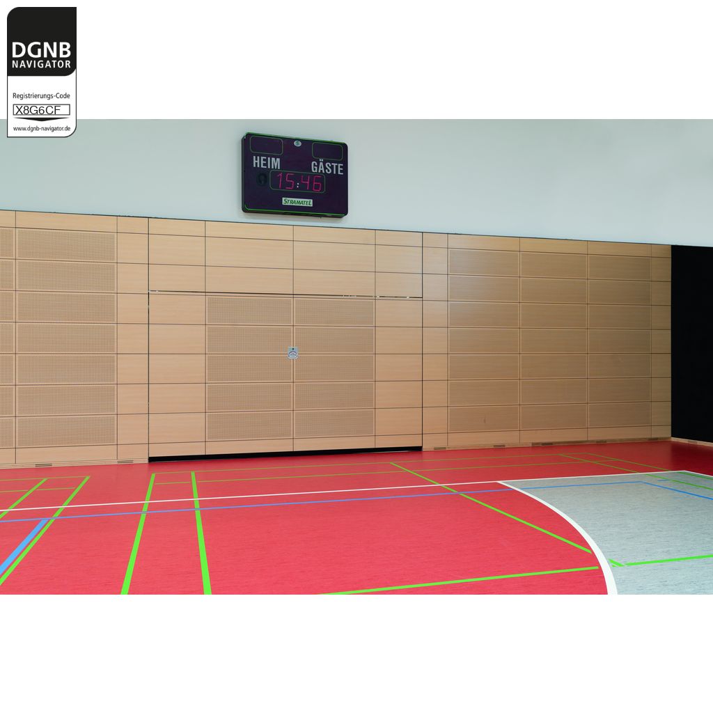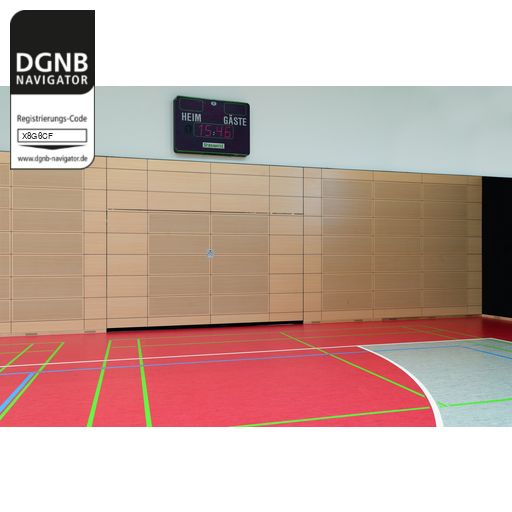 Hörmann Sporthallentore bilden die Abtrennung zwischen Halle und Geräteräumen in Sport- und Mehrzweckhallen.Bezug zum DGNB System