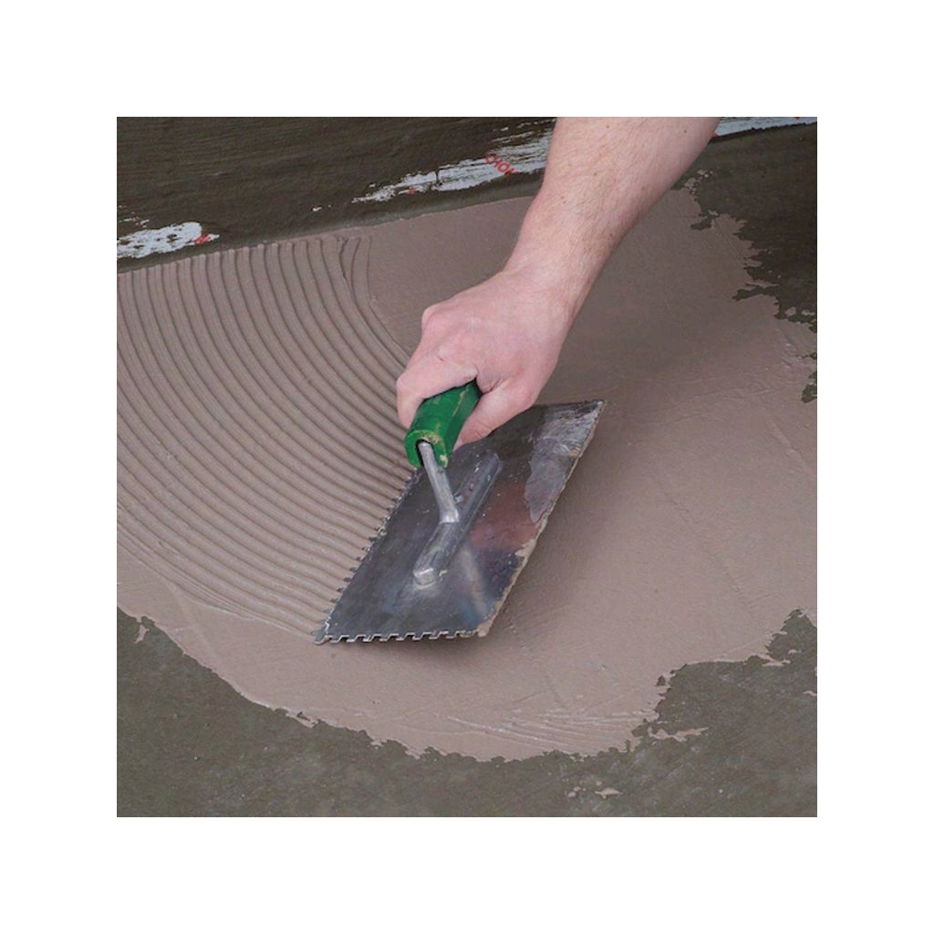 Die Dünnbettverklebung der Fliesen erfolgt auf der abgebundenen, trockenen CERAfix 301 Schicht z. B. mit den kunststoffvergüteten System-Dünnbettmörteln CERAfix 402 FX, CERAfix 403 LFX, CERAfix 412 FX. Bei der Fliesenverlegung auf eine weitgehend hohlraumarme Bettung achten. Den Natursteinkleber CERAfix 412 FX nicht im Unterwasserbereich einsetzen.