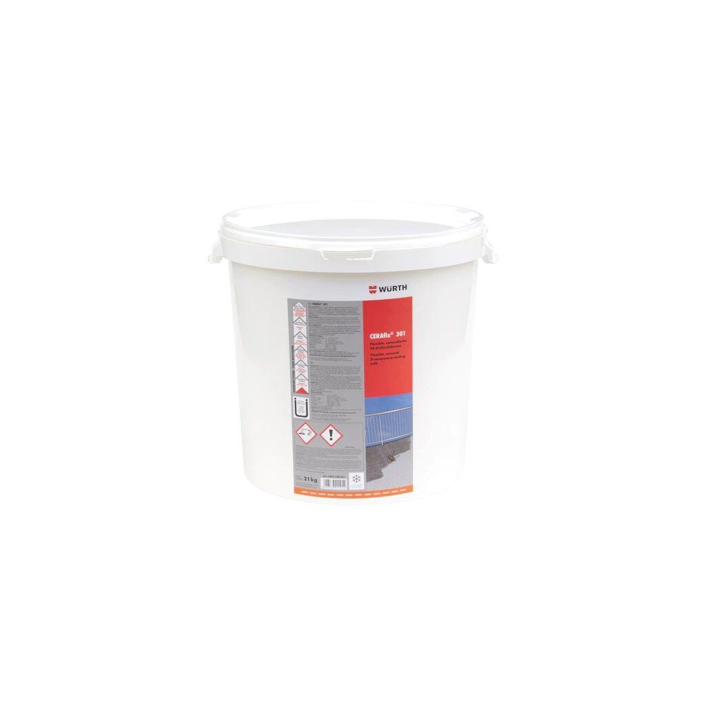 Ca. 50-70% der flüssigen B-Komponente in den Anmischeimer gießen. Die Pulver A-Komponente dazugeben und klumpenfrei anmischen. Zwischenzeitlich mit einer Kelle an den Wandungen des Mischgefäßes entlang schaben, um anhaftendes, unvermischtes Material dem Mischprozess zuzuführen. Anschließend die restliche, flüssige B-Komponente zumischen. Empfohlen wird der Einsatz eines Würth-Rührwerkes mit ca. 500-750 min-1. Die angemischte Masse gleichmäßig mit einem geeigneten Werkzeug flächig in mind. 2 Schichten, in der Sollschichtdicke von 2 mm auftragen. Auftragsstärke von mehr als 2 kg/m2 in einem Arbeitsgang ausschließen – da sonst aufgrund des hohen Bindemittelanteils Risse in der Abdichtungsschicht- besonders bei Luftbewegung und/oder Hitze entstehen können. Darauf folgende Arbeitsgänge können dann ausgeführt werden, wenn die erste Schicht durch Begehen oder Applikation nicht mehr beschädigt werden kann.