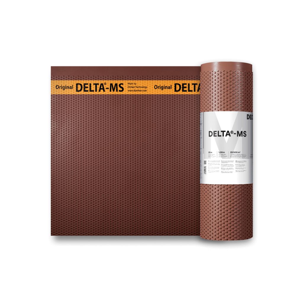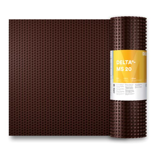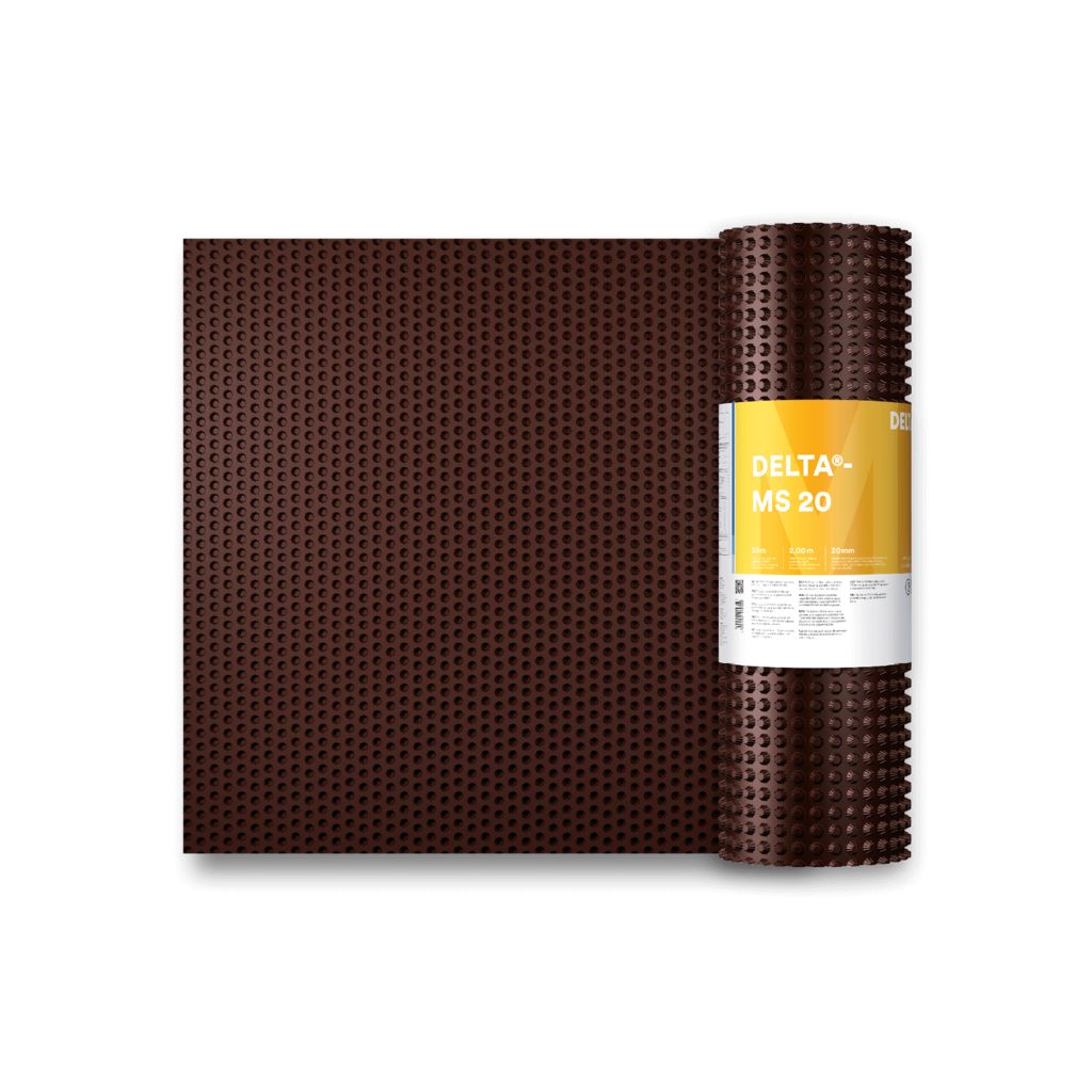 DELTA® - MS:Praxisbewährte Noppenbahn aus HDPE mit hoher Druckfestigkeit für den Einsatz als Anfüllschutz, als Sauberkeitsschicht und als Sickerschicht in zweischaligen Konstruktionen (z. B. Verbau).