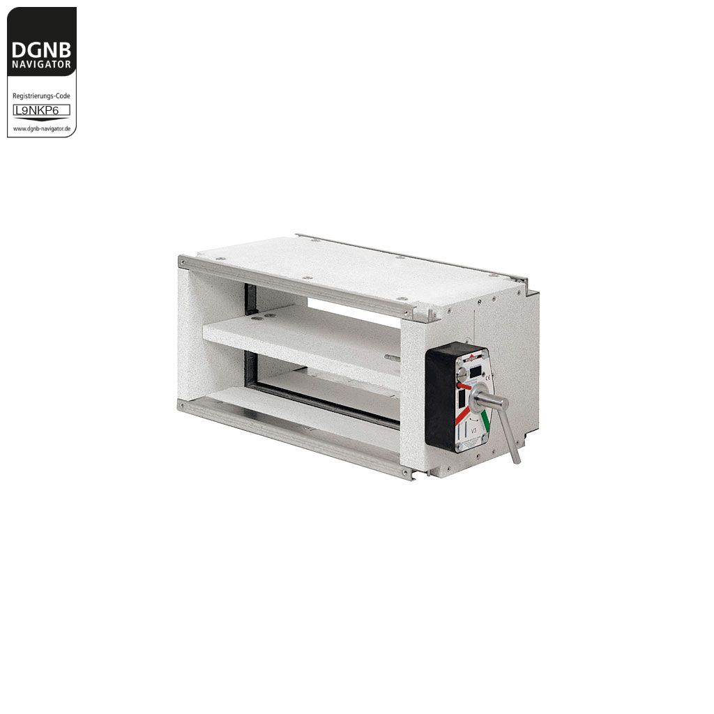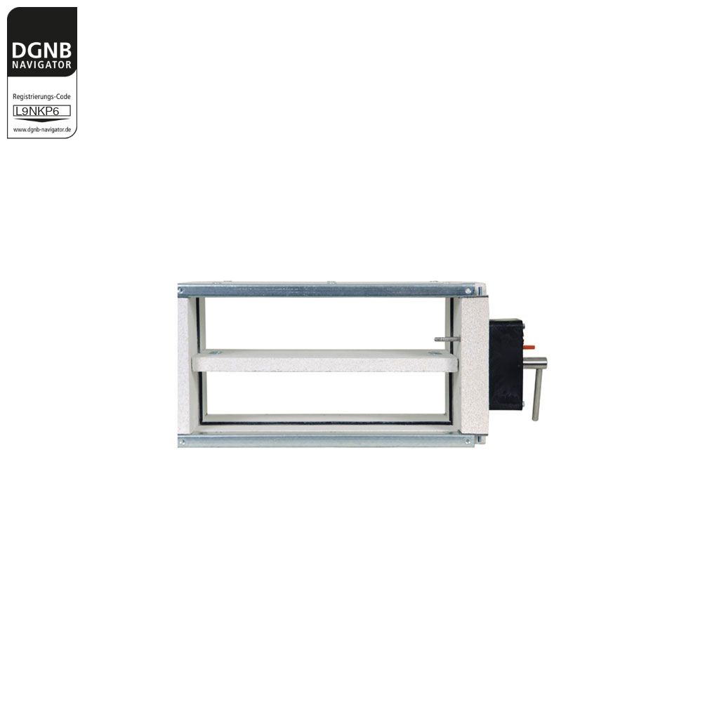 Wartungsfreie FK90K Brandschutzklappe verhindert die Übertragung von Rauch und Feuer durch Lüftungsleitungen einer raumlufttechnischen Anlage in andere Brandabschnitte oder Geschosse. FK90K Brandschutzklappen entsprechen der europäischen Produktnorm EN 15650 und verfügen über eine Leistungserklärung und das CE-Kennzeichen.Klassifizierung der FK90K nach EN 13501-3: EI 30/60/90 (ve-ho, i <-> o) SC10000. Die Anwenderhandbücher der Wildeboer Bauteile GmbH sowie Einbau- und Montagevorschrift sind zu beachten.