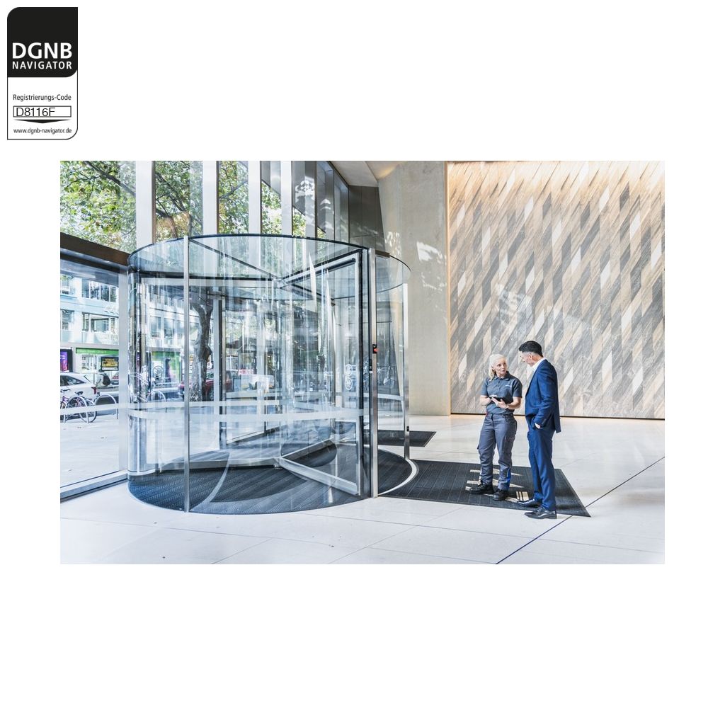 Die KTV Atrium Flex ist eine Ganzglas-Karusselltür, die sich durch ihr transparentes und elegantes Design auszeichnet. Die schlanken Profile sind ideal für Fassaden aus Stahl und Glas. Der KT Flex Direktantrieb ermöglicht verschiedene Betriebsarten, von manuell über kraftunterstützt bis vollautomatisch.Verwendungshinweise