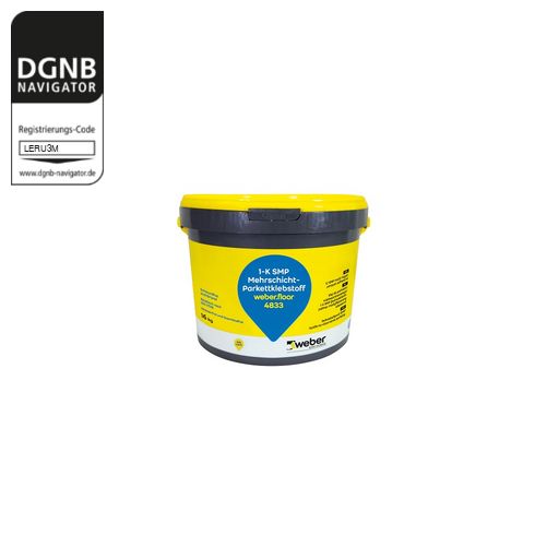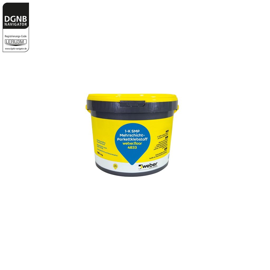 weber.floor 4833 1-K SMP Mehrschicht-Parkettklebstoff wird für die Verlegung von normgerechtem Mehrschichtparkett verwendet. Anwendung im InnenbereichBezug zum DGNB System