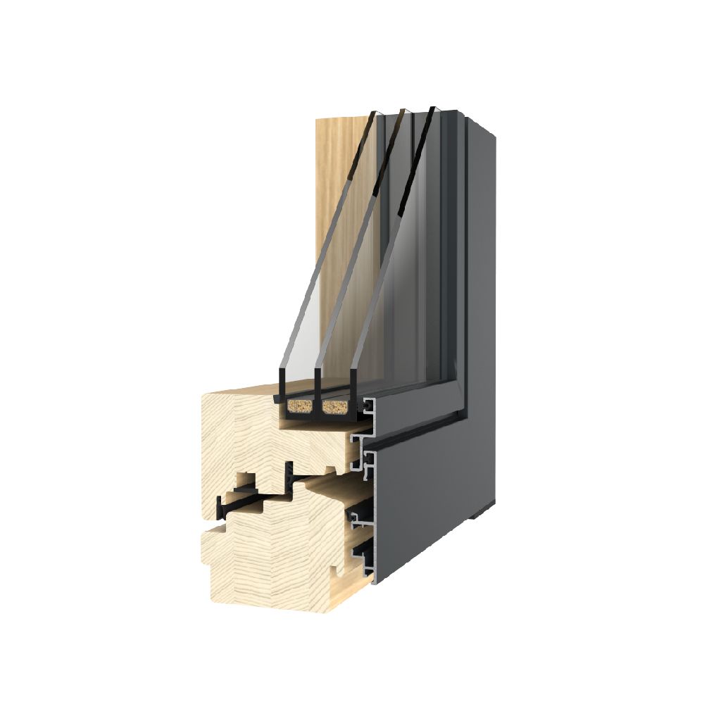 Holzaluminiumfenster 110 mm Bautiefe mit Dreifachverglasung mit Ug 0,5 W/m²K und Uw 0,74 W/m²K.