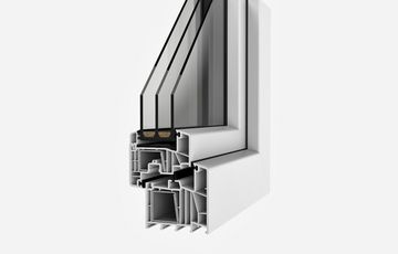 Kunststofffenster 88 TOP 88 mm Bautiefe mit Dreifachverglasung mit Ug 0,5 W/m²K und Uw 0,74 W/m²K.