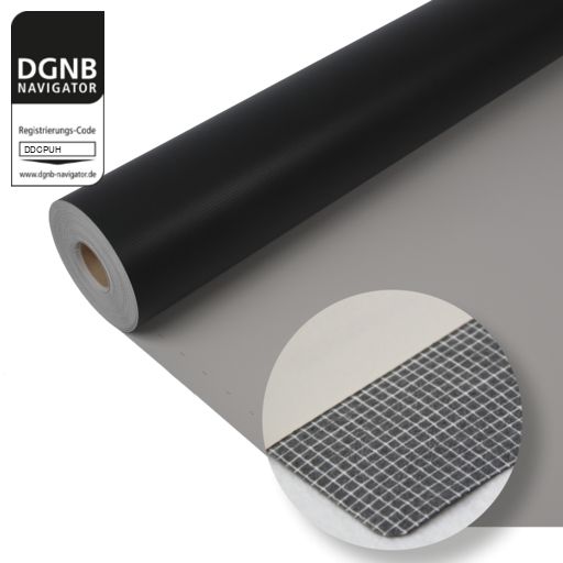 Dachabdichtungsbahn für mechanisch befestigte Dächer (auch unter Kiesschüttung und Begrünung).Bezug zum DGNB System