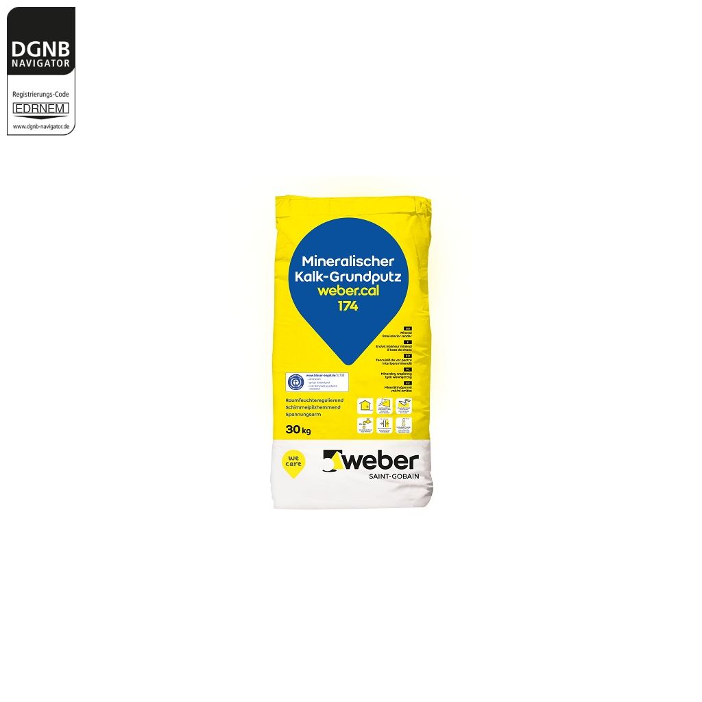 weber.cal 174 ist ein mineralischer Kalkputz für den Innenbereich. Auf weber.cal 174 können alle mineralischen Oberputze von Weber sowie alle lösungsmittelfreien Anstriche aufgebracht werden. Die bauphysikalischen Eigenschaften wie eine gute Raumfeuchteregulierung und Dampfdiffusionsoffenheit vermitteln ein gesundes und behagliches Wohnklima.Bezug zum DGNB System