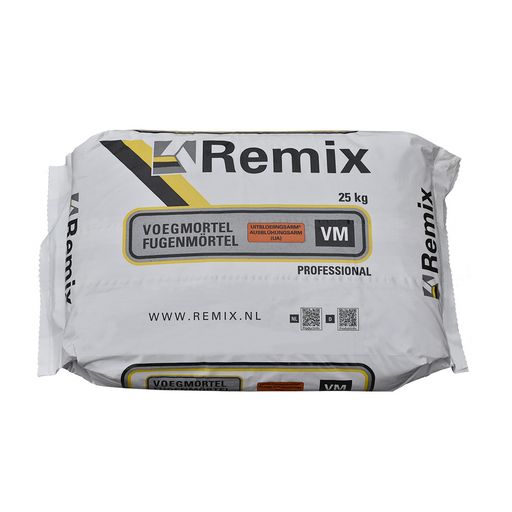Der Remix Fugenmörtel ist ein hydraulisch erhärtender, frostwiderstandsfähiger, zementärer Werktrockenmörtel M15 gemäß EN 998-2. Zum ausblühungsarmen Ausfugen von Sicht- und Verblendmauerwerk aller Art (ausgenommen Naturstein). Der ausblühungsarme (UA) Fugenmörtel von Remix ist mit einem Paket von „Ausblühblockern“ ausgestattet, die das Austreten des freien Kalkes (weiße Ausblühungen) bis zu 60% reduzieren. In Kombination mit Remix ausblühungsarmen Mauermörtel wird das Risiko des freien Kalkes auf 90% reduziert.