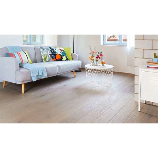 Grosszügige Eichendielen in schönen Farbnuancen, erhältlich in lebhaften oder ruhigen Sortierungen sowie in drei verschiedenen Breiten. Bewährte Bauwerk-Qualität zu einem äusserst attraktiven Preis.