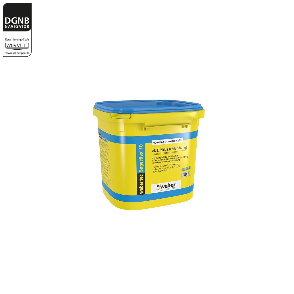 weber.tec Superflex 10 ist eine 2-komponentige Bitumendickbeschichtung, mit allgemeinem bauaufsichtlichen Prüfzeugnis. CE- geprüft nach DIN EN 15814. PMBC gemäß 18533.Kontakt zum Hersteller